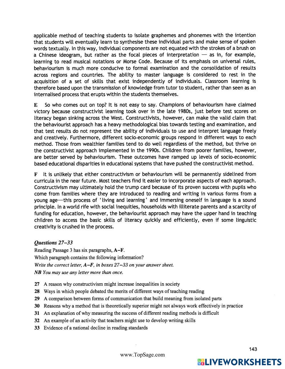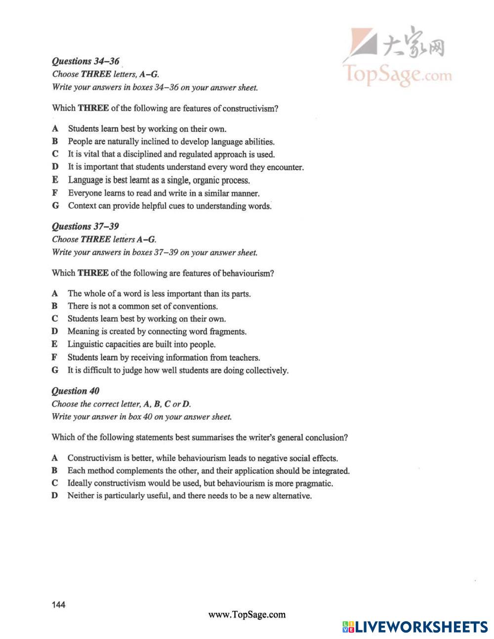 Created byNguyễn Thuý Liên ESL B2 (ระดับกลางสูง) ไวยากรณ์ English คำแนะนำของผู้เขียน .. My Google Classroom Courses × 0 classes selected (0 students total) Quick Access Select all classes (0 classes) All Classes Loading courses... ยกเลิก Share Share to selected Course __COURSE_NAME__ __STUDENT_NAME__ (__STUDENT_EMAIL__) IELTS_SIMULATION_READING_10 ดาวน์โหลด Worksheet Validation Check my answers Emails my answers to my teacher ชื่อเต็ม Group/level School subject Teacher's email or key code Close ส่งข้อมูล Validating worksheet... (12) Your answers have been sent to your teacher. Good luck! OK We encountered an error submitting your answers. Please try again. OK โฆษณา | ใช้งานแบบไม่มีโฆษณา Created byNguyễn Thuý Liên ESL B2 (ระดับกลางสูง) ไวยากรณ์ English คำแนะนำของผู้เขียน .. สำรวจแผ่นงาน المجرد والمزيد ESL B2 المجرد والمزيد Grammar - ESL المجرد والمزيد Prepare! 7 page 54 ESL B2 Prepare! 7 page 54 Grammar - ESL Answer all questions Irregular Past Participles crossword ESL B2 Irregular Past Participles crossword Grammar - ESL English as a second language Fill in the crossword with the past participles of the irregular verbs given. Main content: Irregular verbs Other contents: past participle, Present Perfect, Past Perfect, Future Perfect, Passive Voice Penjodoh bilangan ESL B2 Penjodoh bilangan Grammar - ESL Jawab semua soalan.