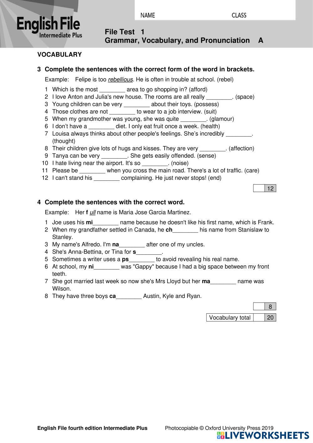 Workbook 5A Grammar, Vocabulary & Pronunciation