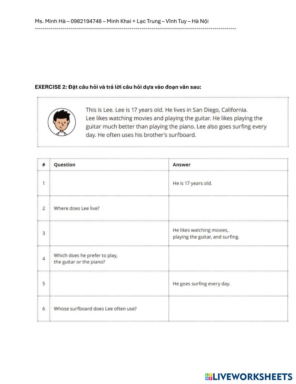 Created bytranuyen ESL English A2 (พื้นฐาน) ไวยากรณ์ English คำแนะนำของผู้เขียน . My Google Classroom Courses × 0 classes selected (0 students total) Quick Access Select all classes (0 classes) All Classes Loading courses... ยกเลิก Share Share to selected Course __COURSE_NAME__ __STUDENT_NAME__ (__STUDENT_EMAIL__) PRACTICE WH-QUESTION ดาวน์โหลด Worksheet Validation Check my answers Emails my answers to my teacher ชื่อเต็ม Group/level School subject Teacher's email or key code Close ส่งข้อมูล Validating worksheet... (12) Your answers have been sent to your teacher. Good luck! OK We encountered an error submitting your answers. Please try again. OK โฆษณา | ใช้งานแบบไม่มีโฆษณา Created bytranuyen ESL English A2 (พื้นฐาน) ไวยากรณ์ English คำแนะนำของผู้เขียน . สำรวจแผ่นงาน Zero Conditionals With Spring Vocabulary ESL A2 Zero Conditionals With Spring Vocabulary Grammar - ESL In this A2-level ESL worksheet, your students must use the Present Simple to form zero conditional sentences about the spring. Past Simple - Regular and irregular verbs ESL A2 Past Simple - Regular and irregular verbs Grammar - ESL English as a second language Past simple - regular and irregular verbs. Affirmative and negative sentences, questions. Present simple affirmative and negative ESL A2 Present simple affirmative and negative Grammar - ESL English as a second language This worksheet is not my product, I've just made it interactive. Main content: Present Simple Present Simple Tense ESL A2 Present Simple Tense Grammar - ESL English as a second language Two exercises to practise positive, negative and question form of present simple tense