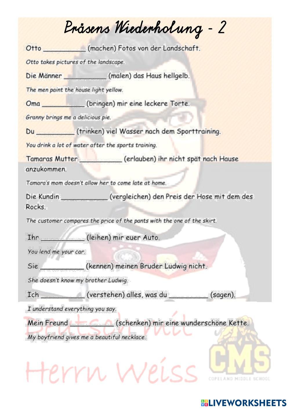 Ergänze jeden Satz mit der konjugierten Form von jedem Verb.
