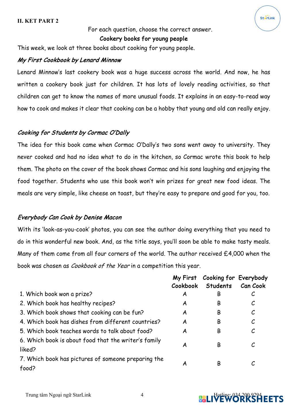 Created byStarLink ESL English A2 (พื้นฐาน) ไวยากรณ์ English คำแนะนำของผู้เขียน Viet Teacher_S4_W29_U9_Grammar 2 & Grammar 1 Revision My Google Classroom Courses × 0 classes selected (0 students total) Quick Access Select all classes (0 classes) All Classes Loading courses... ยกเลิก Share Share to selected Course __COURSE_NAME__ __STUDENT_NAME__ (__STUDENT_EMAIL__) Viet Teacher_S4_W29_U9_Grammar 2 & Grammar 1 Revision ดาวน์โหลด Worksheet Validation Check my answers Emails my answers to my teacher ชื่อเต็ม Group/level School subject Teacher's email or key code Close ส่งข้อมูล Validating worksheet... (12) Your answers have been sent to your teacher. Good luck! OK We encountered an error submitting your answers. Please try again. OK โฆษณา | ใช้งานแบบไม่มีโฆษณา Created byStarLink ESL English A2 (พื้นฐาน) ไวยากรณ์ English คำแนะนำของผู้เขียน Viet Teacher_S4_W29_U9_Grammar 2 & Grammar 1 Revision สำรวจแผ่นงาน Zero Conditionals With Spring Vocabulary ESL A2 Zero Conditionals With Spring Vocabulary Grammar - ESL In this A2-level ESL worksheet, your students must use the Present Simple to form zero conditional sentences about the spring. Past Simple - Regular and irregular verbs ESL A2 Past Simple - Regular and irregular verbs Grammar - ESL English as a second language Past simple - regular and irregular verbs. Affirmative and negative sentences, questions. Present simple affirmative and negative ESL A2 Present simple affirmative and negative Grammar - ESL English as a second language This worksheet is not my product, I've just made it interactive. Main content: Present Simple Present Simple Tense ESL A2 Present Simple Tense Grammar - ESL English as a second language Two exercises to practise positive, negative and question form of present simple tense