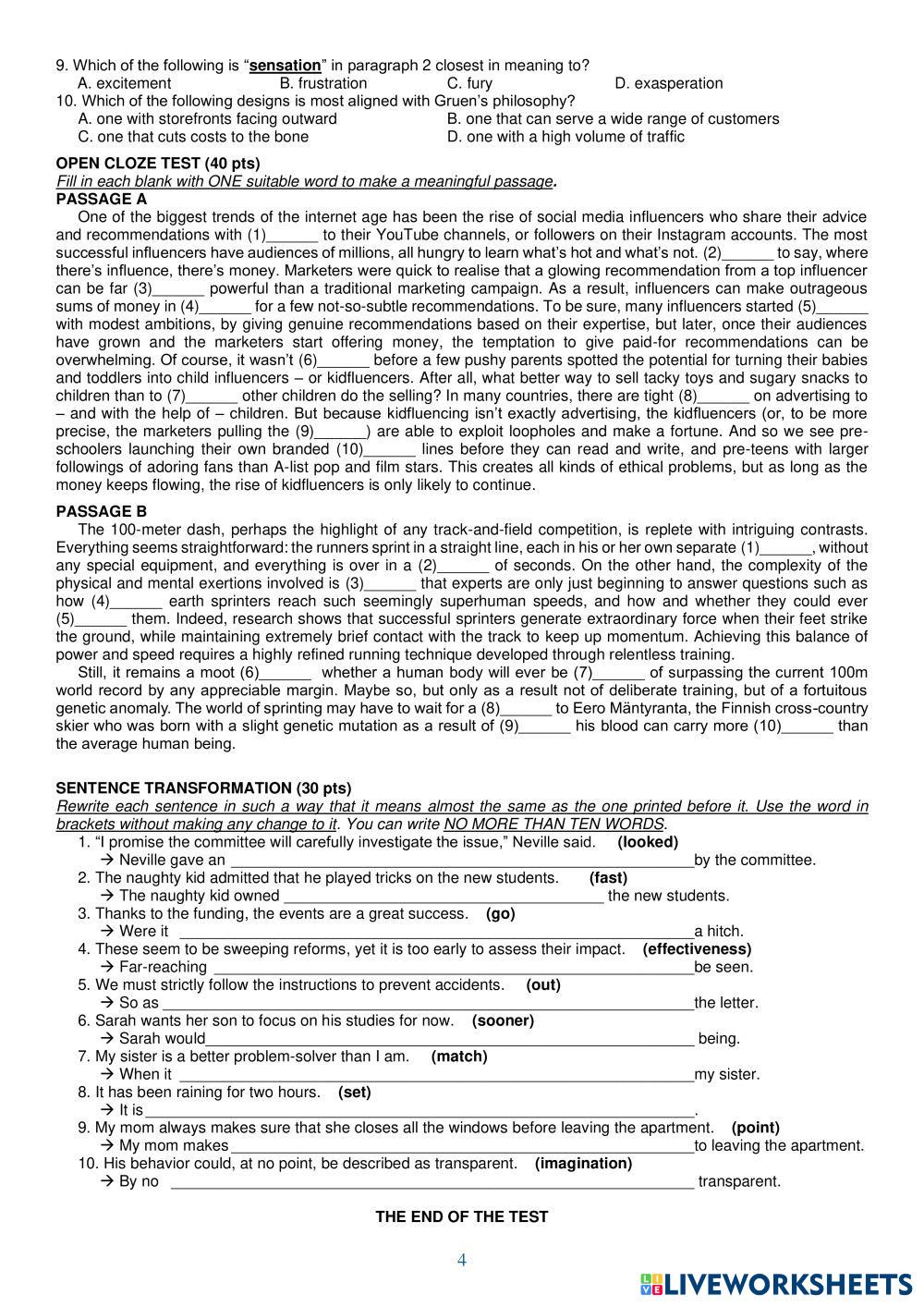 Created byNguyễn Thuý Liên ESL English C1 (ขั้นสูง) ไวยากรณ์ English คำแนะนำของผู้เขียน . My Google Classroom Courses × 0 classes selected (0 students total) Quick Access Select all classes (0 classes) All Classes Loading courses... ยกเลิก Share Share to selected Course __COURSE_NAME__ __STUDENT_NAME__ (__STUDENT_EMAIL__) HSG9-2526 ดาวน์โหลด Worksheet Validation Check my answers Emails my answers to my teacher ชื่อเต็ม Group/level School subject Teacher's email or key code Close ส่งข้อมูล Validating worksheet... (12) Your answers have been sent to your teacher. Good luck! OK We encountered an error submitting your answers. Please try again. OK โฆษณา | ใช้งานแบบไม่มีโฆษณา Created byNguyễn Thuý Liên ESL English C1 (ขั้นสูง) ไวยากรณ์ English คำแนะนำของผู้เขียน . สำรวจแผ่นงาน E9 NC - CPE Mark Harrison - Gap fill 1 ESL C1 E9 NC - CPE Mark Harrison - Gap fill 1 Grammar - ESL Complete the exercises Modals & Semi-modals Practice ESL C1 Modals & Semi-modals Practice Grammar - ESL Instructions: Choose the correct modal or semi-modal from the options in the parentheses to complete the sentence. Pay attention to the time (past, present, or future). Modals & Semi-modals Practice ESL C1 Modals & Semi-modals Practice Grammar - ESL Instructions: Choose the correct modal or semi-modal from the options in the parentheses to complete the sentence. Pay attention to the time (past, present, or future). past simple ESL C1 past simple Grammar - ESL Instructions: Fill in the blanks with the correct Past Simple form of the verb in the parentheses.