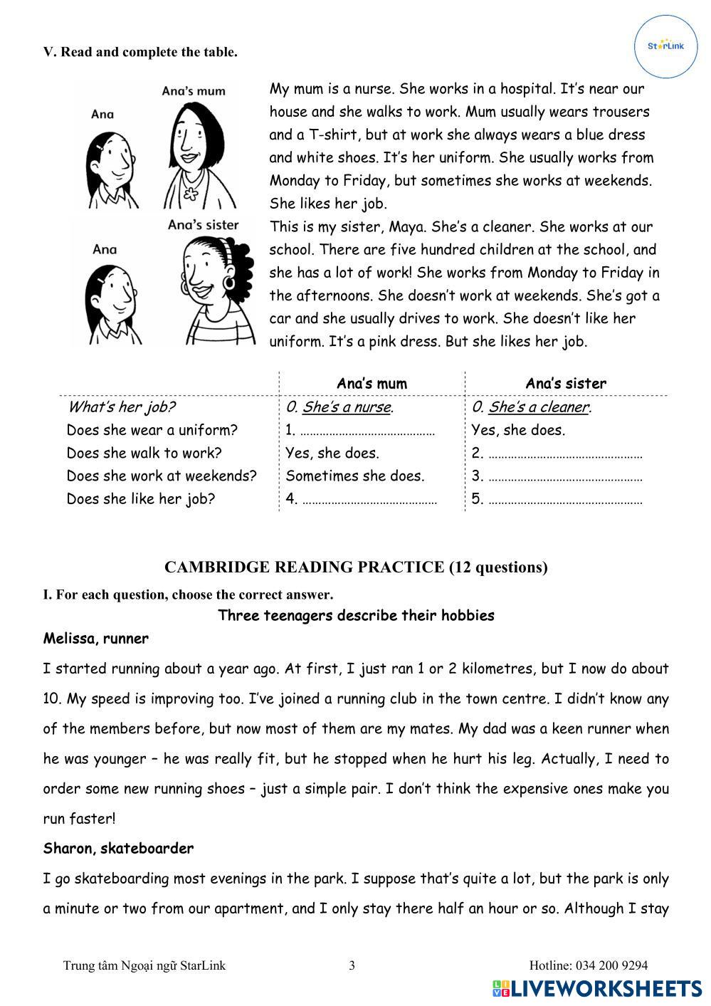 Created byStarLink ESL English A2 (พื้นฐาน) ไวยากรณ์ English คำแนะนำของผู้เขียน Viet Teacher_S4_W30_U5&6_Grammar Revision & Supplementary My Google Classroom Courses × 0 classes selected (0 students total) Quick Access Select all classes (0 classes) All Classes Loading courses... ยกเลิก Share Share to selected Course __COURSE_NAME__ __STUDENT_NAME__ (__STUDENT_EMAIL__) Viet Teacher_S4_W30_U5&6_Grammar Revision & Supplementary ดาวน์โหลด Worksheet Validation Check my answers Emails my answers to my teacher ชื่อเต็ม Group/level School subject Teacher's email or key code Close ส่งข้อมูล Validating worksheet... (12) Your answers have been sent to your teacher. Good luck! OK We encountered an error submitting your answers. Please try again. OK โฆษณา | ใช้งานแบบไม่มีโฆษณา Created byStarLink ESL English A2 (พื้นฐาน) ไวยากรณ์ English คำแนะนำของผู้เขียน Viet Teacher_S4_W30_U5&6_Grammar Revision & Supplementary สำรวจแผ่นงาน Subject -object Pronouns ESL A2 Subject -object Pronouns Grammar - ESL Choose the right answer THIRD CYCLE EXAM ESL A2 THIRD CYCLE EXAM Grammar - ESL ANSWER THE QUESTIONS Simple Past Tense (Regular Verbs) ESL A2 Simple Past Tense (Regular Verbs) Grammar - ESL English as a second language Past simple regular verbs Based on CEFR Could Couldn't - Used to didn't use to ESL A2 Could Couldn't - Used to didn't use to Grammar - ESL answer the test