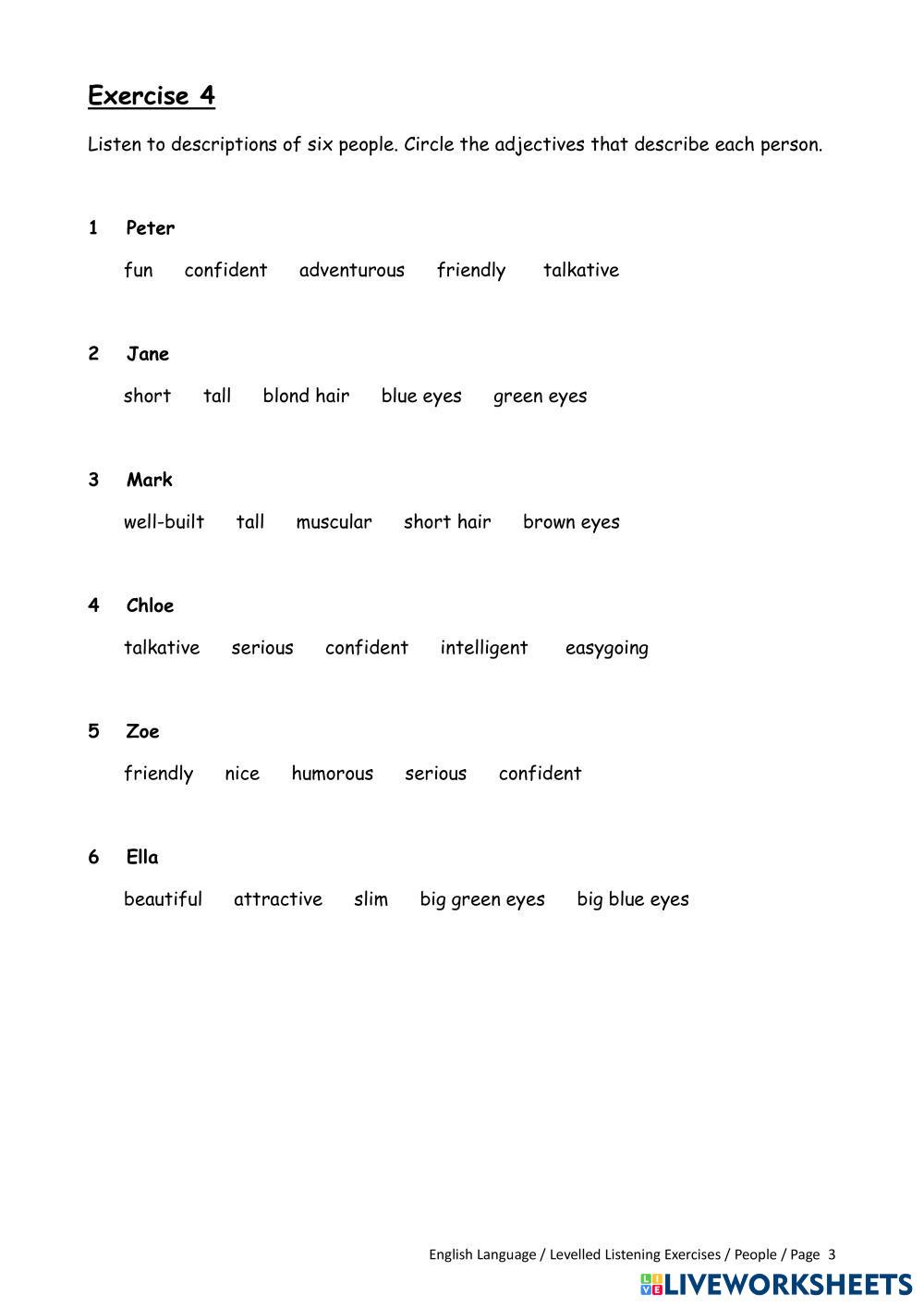 Created by engdept ESL Chinese, Traditional A1-Beginner Listening English Author's Instructions Complete ALL exercises. My Google Classroom Courses × 0 classes selected (0 students total) Quick Access Select all classes (0 classes) All Classes Loading courses... ยกเลิก Share Share to selected Course __COURSE_NAME__ __STUDENT_NAME__ (__STUDENT_EMAIL__) 18_People ดาวน์โหลด Worksheet Validation Check my answers Emails my answers to my teacher ชื่อเต็ม Group/level School subject Teacher's email or key code Close ส่งข้อมูล Validating worksheet... (12) Your answers have been sent to your teacher. Good luck! OK We encountered an error submitting your answers. Please try again. OK โฆษณา | ใช้งานแบบไม่มีโฆษณา Created by engdept ESL Chinese, Traditional A1-Beginner Listening English Author's Instructions Complete ALL exercises. Explore Worksheets ใบงานที่ 2.7 M.2 ESL A1-Beginner ใบงานที่ 2.7 M.2 Listening - ESL 听力 ใบงานที่ 7.9 M.1 ESL A1-Beginner ใบงานที่ 7.9 M.1 Listening - ESL 听力 ใบงานที่ 6.9 M.1 ESL A1-Beginner ใบงานที่ 6.9 M.1 Listening - ESL 听力 ใบงานที่ 4.2 P.3 ESL A1-Beginner ใบงานที่ 4.2 P.3 Listening - ESL 听力