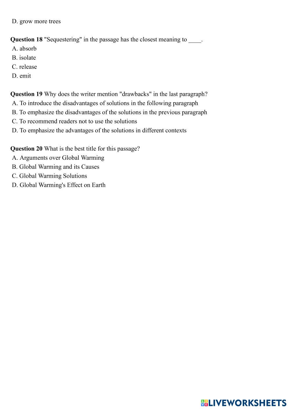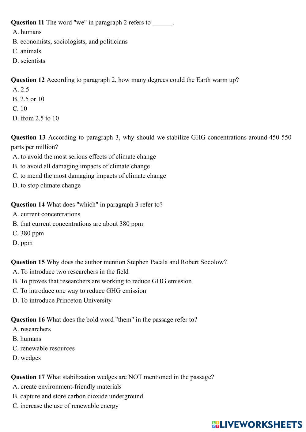 Created byNguyen Ho Huynh Bao ESL English B2 (ระดับกลางสูง) การอ่าน English คำแนะนำของผู้เขียน Choose My Google Classroom Courses × 0 classes selected (0 students total) Quick Access Select all classes (0 classes) All Classes Loading courses... ยกเลิก Share Share to selected Course __COURSE_NAME__ __STUDENT_NAME__ (__STUDENT_EMAIL__) B2 W4 READING - GLOBAL WARMING ดาวน์โหลด Worksheet Validation Check my answers Emails my answers to my teacher ชื่อเต็ม Group/level School subject Teacher's email or key code Close ส่งข้อมูล Validating worksheet... (12) Your answers have been sent to your teacher. Good luck! OK We encountered an error submitting your answers. Please try again. OK โฆษณา | ใช้งานแบบไม่มีโฆษณา Created byNguyen Ho Huynh Bao ESL English B2 (ระดับกลางสูง) การอ่าน English คำแนะนำของผู้เขียน Choose สำรวจแผ่นงาน B2 W4 READING - JOBS ESL B2 B2 W4 READING - JOBS Reading - ESL Choose Family matters ESL B2 Family matters Reading - ESL Answer the questions Fashion - Relative Pronouns B2 Clothes Physical Appearance Personal Descriptions ESL B2 Fashion - Relative Pronouns B2 Clothes Physical Appearance Personal Descriptions Reading - ESL Read the text and complete each blank with a relative pronoun. Read-MN- Test 2 ESL B2 Read-MN- Test 2 Reading - ESL none