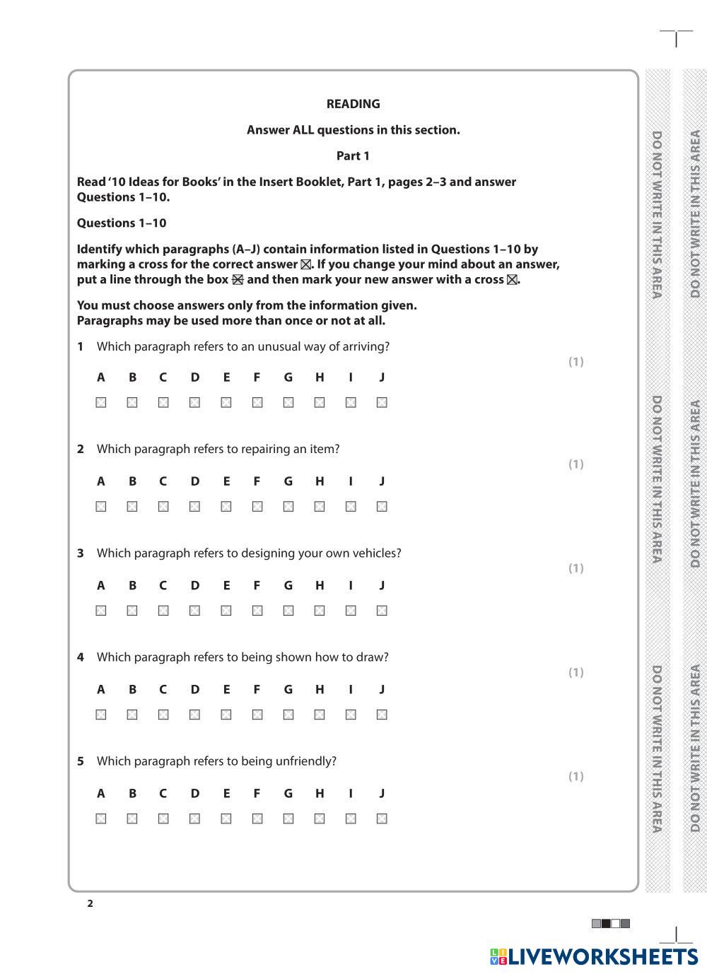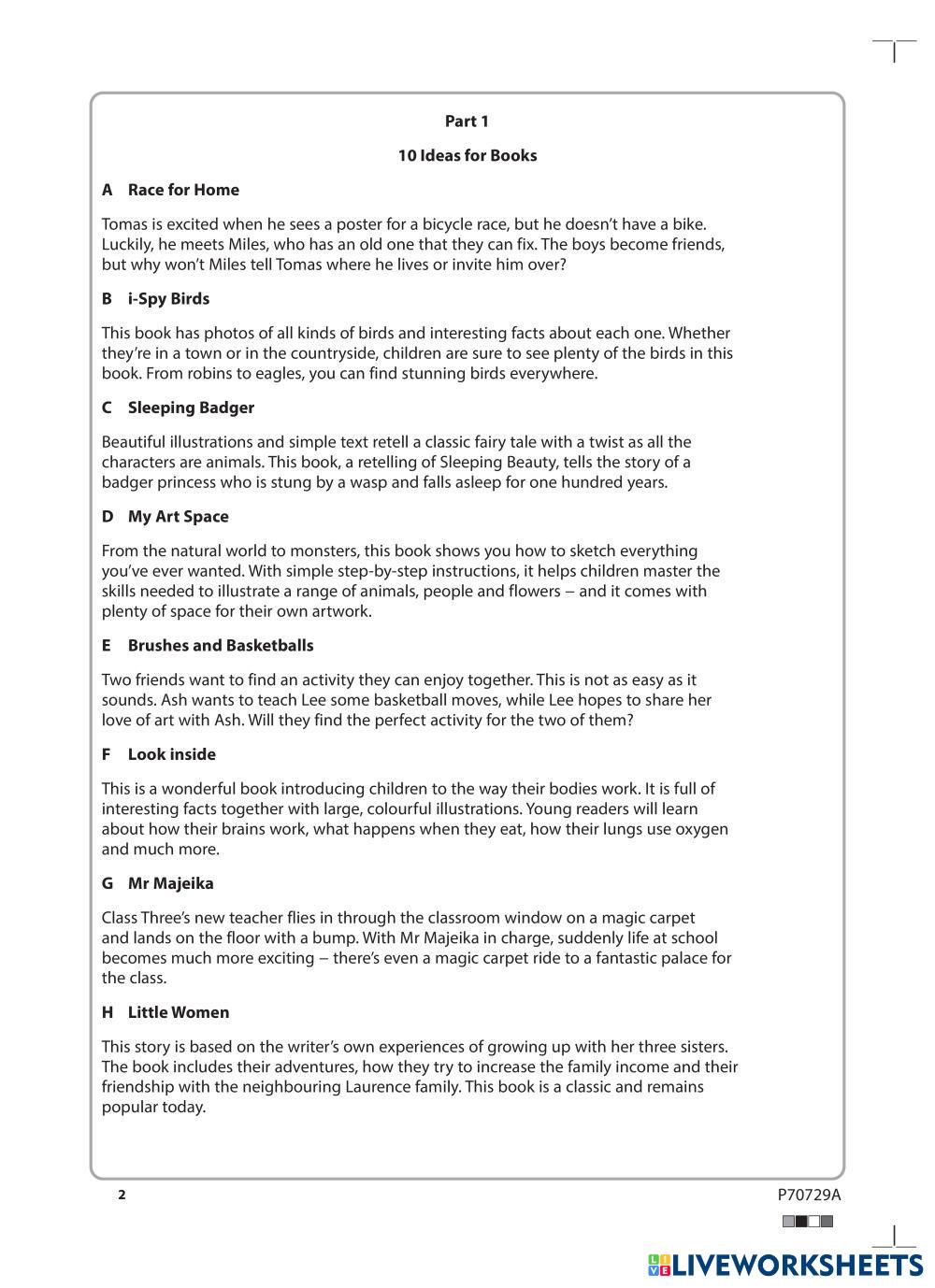 Created by JoeHtut English as a Second Language (ESL) Reading Test Age 14+ level: IGCSE English Author's Instructions My Google Classroom Courses × 0 classes selected (0 students total) Quick Access Select all classes (0 classes) All Classes Loading courses... ยกเลิก Share Share to selected Course __COURSE_NAME__ __STUDENT_NAME__ (__STUDENT_EMAIL__) Reading Past Paper -1 ดาวน์โหลด Worksheet Validation Check my answers Emails my answers to my teacher ชื่อเต็ม Group/level School subject Teacher's email or key code Close ส่งข้อมูล Validating worksheet... (12) Your answers have been sent to your teacher. Good luck! OK We encountered an error submitting your answers. Please try again. OK โฆษณา | ใช้งานแบบไม่มีโฆษณา Created by JoeHtut English as a Second Language (ESL) Reading Test Age 14+ level: IGCSE English Author's Instructions