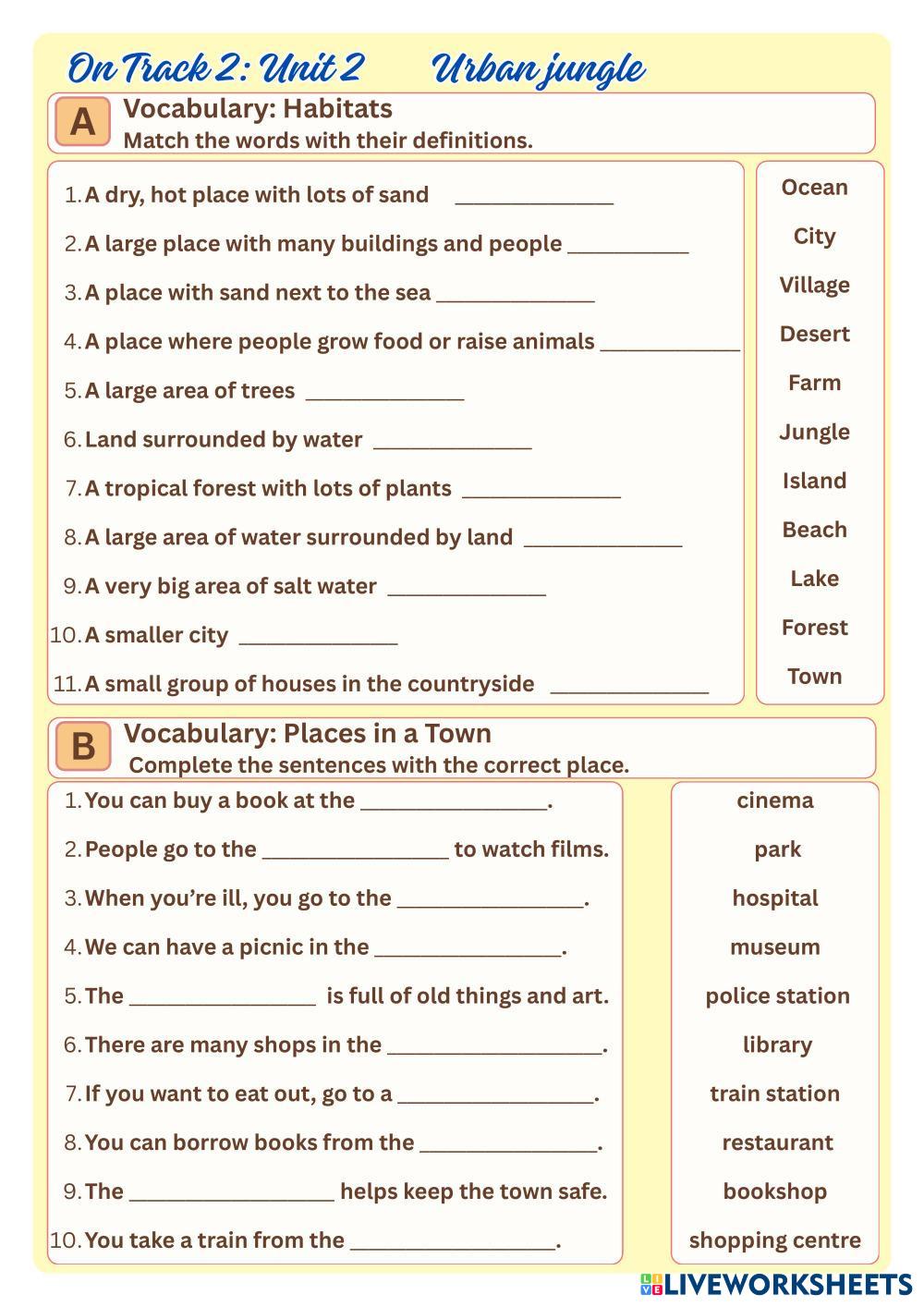 Vocabulary: Places in a Town (Complete the sentences with the correct place)