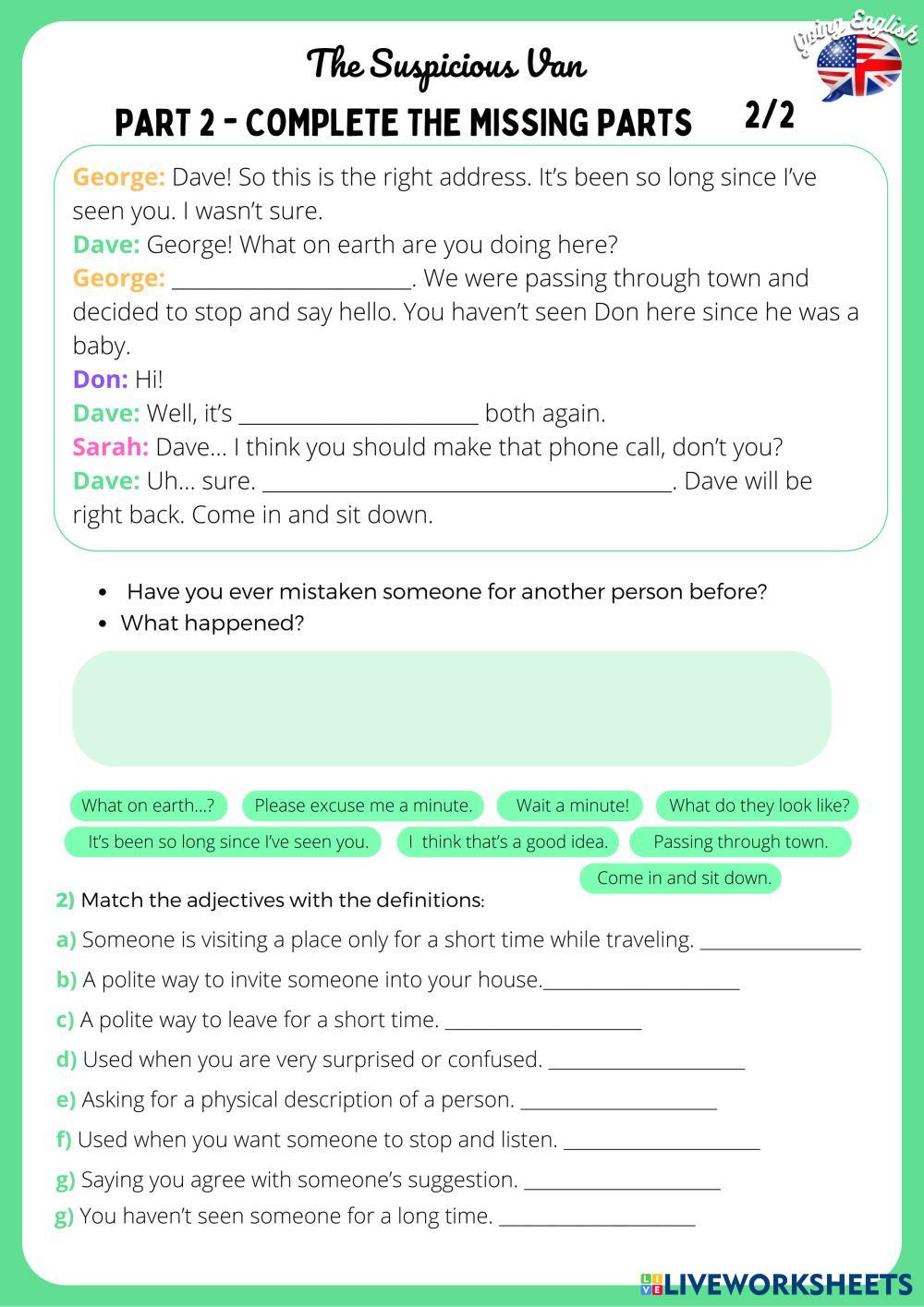 Activity with multiple-choice questions and a comprehension task.