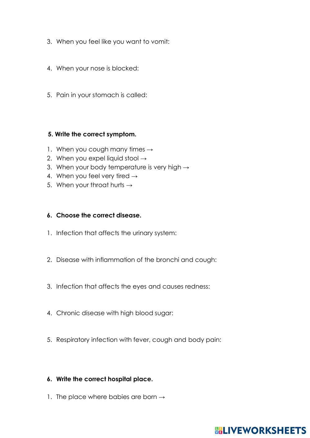 Write the correct answer in the different exercises.