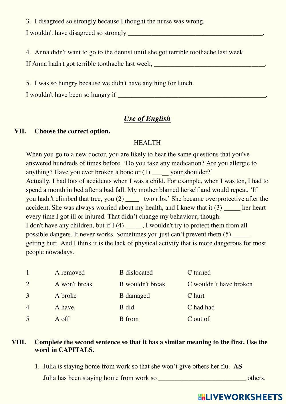 Created byОлена Совенко ESL English B1 (ระดับกลางต่ำ) การเขียน English คำแนะนำของผู้เขียน Complete all the tasks. My Google Classroom Courses × 0 classes selected (0 students total) Quick Access Select all classes (0 classes) All Classes Loading courses... ยกเลิก Share Share to selected Course __COURSE_NAME__ __STUDENT_NAME__ (__STUDENT_EMAIL__) Good health. Test. ดาวน์โหลด Worksheet Validation Check my answers Emails my answers to my teacher ชื่อเต็ม Group/level School subject Teacher's email or key code Close ส่งข้อมูล Validating worksheet... (12) Your answers have been sent to your teacher. Good luck! OK We encountered an error submitting your answers. Please try again. OK โฆษณา | ใช้งานแบบไม่มีโฆษณา Created byОлена Совенко ESL English B1 (ระดับกลางต่ำ) การเขียน English คำแนะนำของผู้เขียน Complete all the tasks. สำรวจแผ่นงาน A letter of application ESL B1 A letter of application Writing - ESL write Reinforcement WS KB6 U1 HIGH TECHNOLOGY ESL B1 Reinforcement WS KB6 U1 HIGH TECHNOLOGY Writing - ESL Complete the online chat Quality or Quantity? ESL B1 Quality or Quantity? Writing - ESL GM food Job application letter ESL B1 Job application letter Writing - ESL Write a letter