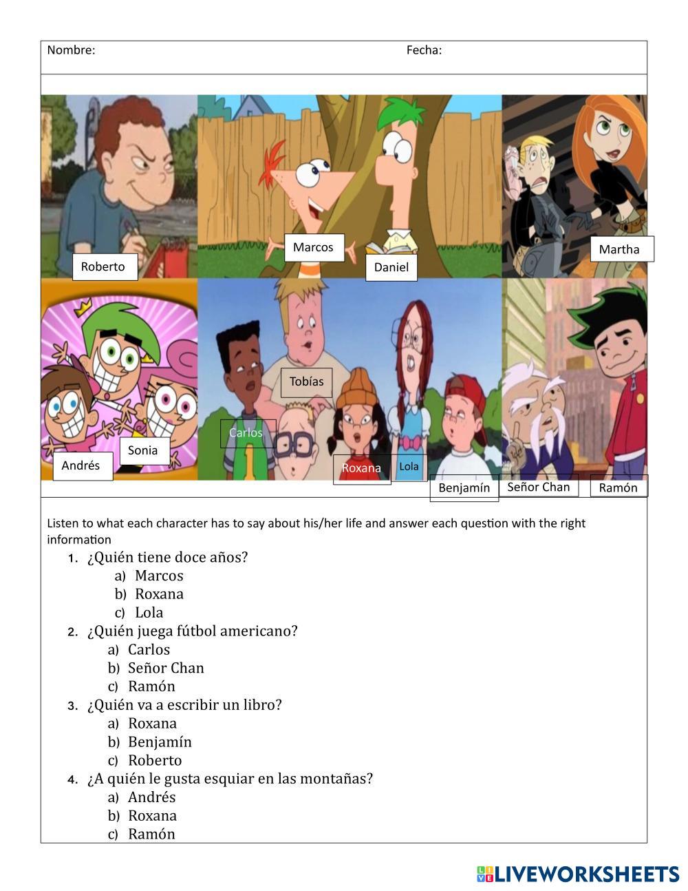 This is worksheet to show understanding of what many people are telling about their life. Esta es una hoja de trabajo para mostrar lo que se entiende mientras las personas hablan de su vida personal.