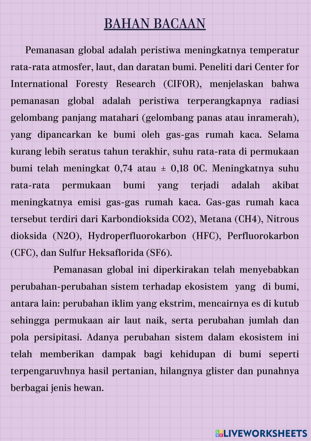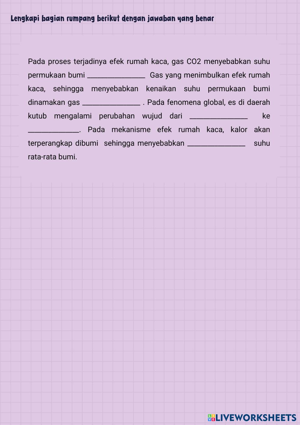 Created byNurul Izzah FISIKA Pemanasan Global Age 16+ level: 11 English คำแนะนำของผู้เขียน My Google Classroom Courses × 0 classes selected (0 students total) Quick Access Select all classes (0 classes) All Classes Loading courses... ยกเลิก Share Share to selected Course __COURSE_NAME__ __STUDENT_NAME__ (__STUDENT_EMAIL__) E-LKPD PEMANASAN GLOBAL ดาวน์โหลด Worksheet Validation Check my answers Emails my answers to my teacher ชื่อเต็ม Group/level School subject Teacher's email or key code Close ส่งข้อมูล Validating worksheet... (12) Your answers have been sent to your teacher. Good luck! OK We encountered an error submitting your answers. Please try again. OK โฆษณา | ใช้งานแบบไม่มีโฆษณา Created byNurul Izzah FISIKA Pemanasan Global Age 16+ level: 11 English คำแนะนำของผู้เขียน