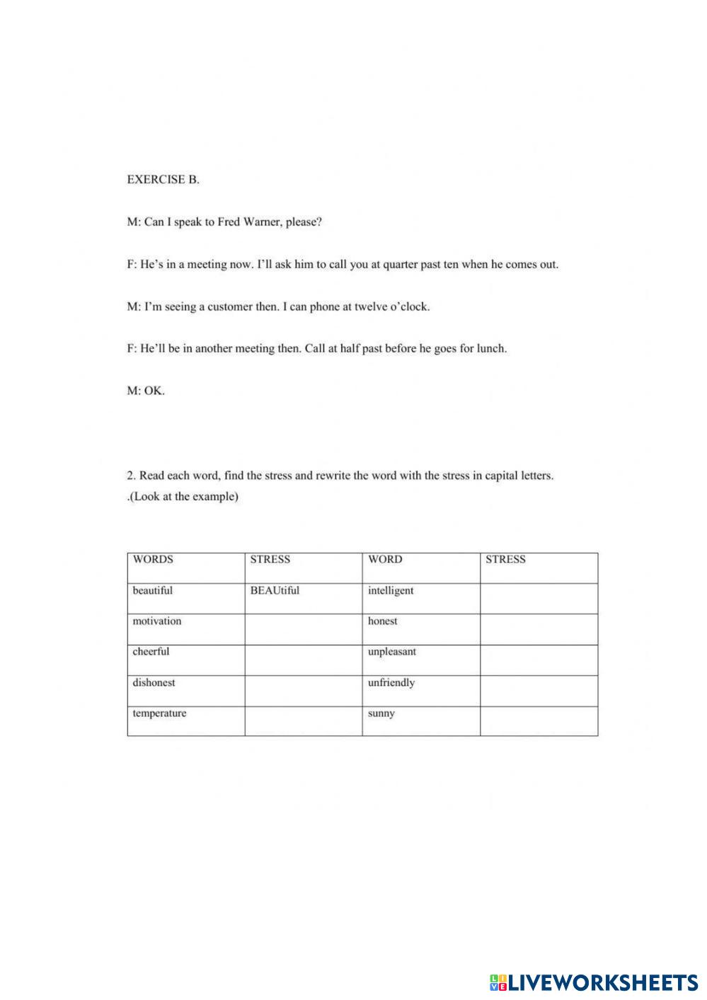 Read each word, find the stress and rewrite the word with the stress in capital letters. (Look at the example)
