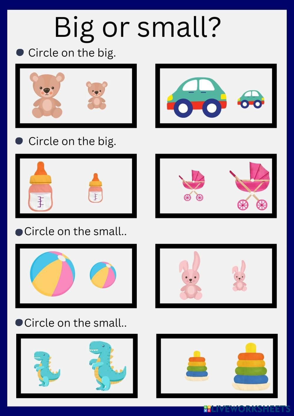 Created byAqsa siddiqui คณิตศาสตร์ อนุบาล อนุบาล 1–2 การวัด English คำแนะนำของผู้เขียน circle the big object My Google Classroom Courses × 0 classes selected (0 students total) Quick Access Select all classes (0 classes) All Classes Loading courses... ยกเลิก Share Share to selected Course __COURSE_NAME__ __STUDENT_NAME__ (__STUDENT_EMAIL__) big and small ดาวน์โหลด Worksheet Validation Check my answers Emails my answers to my teacher ชื่อเต็ม Group/level School subject Teacher's email or key code Close ส่งข้อมูล Validating worksheet... (12) Your answers have been sent to your teacher. Good luck! OK We encountered an error submitting your answers. Please try again. OK โฆษณา | ใช้งานแบบไม่มีโฆษณา Created byAqsa siddiqui คณิตศาสตร์ อนุบาล อนุบาล 1–2 การวัด English คำแนะนำของผู้เขียน circle the big object สำรวจแผ่นงาน Which box have more toys? Math Pre-K Which box have more toys? Measurement - Math tick the correct answer Zürafalardan Trene Doğru Ölçüm Zamanı Math Pre-K Zürafalardan Trene Doğru Ölçüm Zamanı Measurement - Math Merhaba minik mimarlar! Bugün zürafalar ve trenlerle harika bir ölçüm yolculuğuna çıkıyoruz. Resimleri dikkatlice incele; en uzun olanları ve en kısa olanları bulup işaretleyelim. Bakalım kimler tüm doğru cevapları bulabilecek? Başarılar!" Big and Small Math Pre-K Big and Small Measurement - Math Drag the object to the correct column Zürafalı Uzun Tavşanlar Kısa Kavram Yolculuğu Math Pre-K Zürafalı Uzun Tavşanlar Kısa Kavram Yolculuğu Measurement - Math Merhaba minik mimarlar! Bugün zürafalar ve tavşanlarla harika bir ölçüm yolculuğuna çıkıyoruz. Resimleri dikkatlice incele; en uzun olanları ve en kısa olanları bulup işaretleyelim. Bakalım kimler tüm doğru cevapları bulabilecek? Başarılar!"