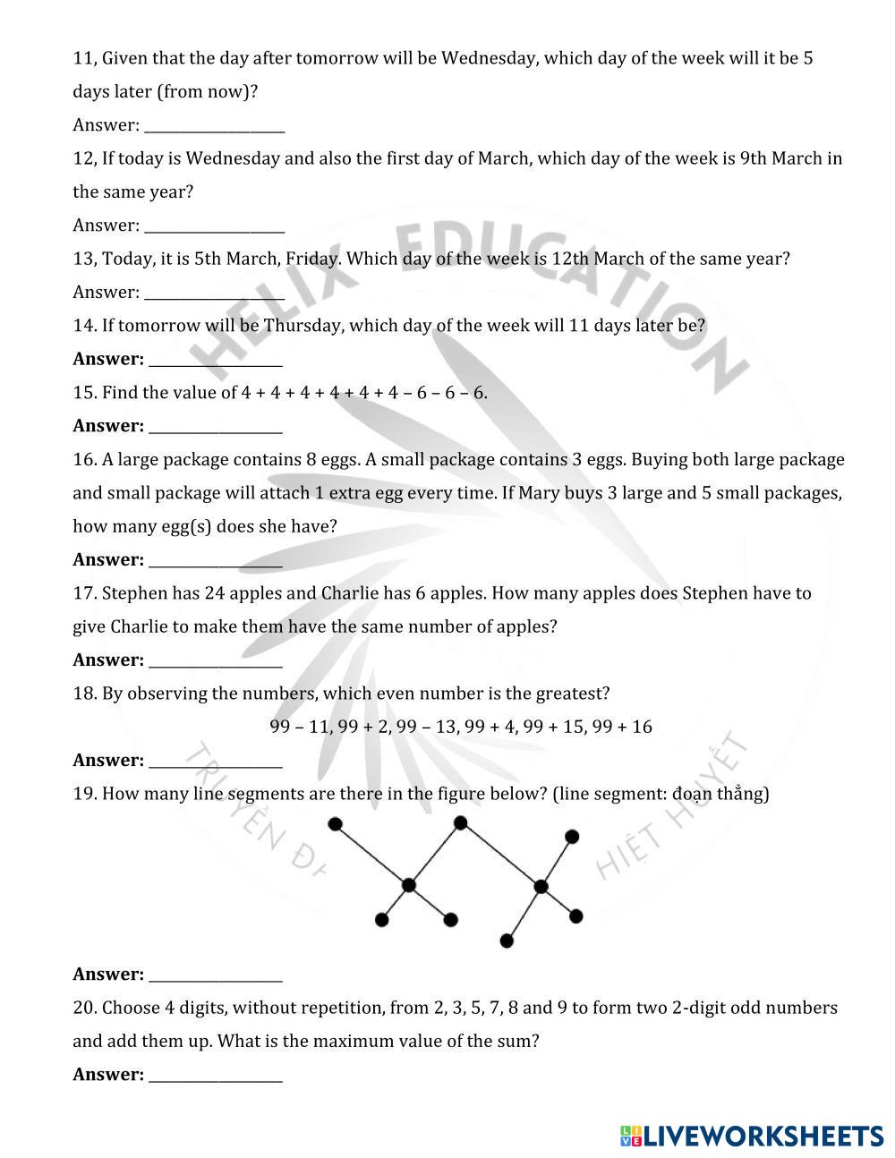 Created byTrang คณิตศาสตร์ ประถมศึกษา ป.2 (ประถมศึกษาปีที่ 2) การคูณและการหาร English คำแนะนำของผู้เขียน Choose My Google Classroom Courses × 0 classes selected (0 students total) Quick Access Select all classes (0 classes) All Classes Loading courses... ยกเลิก Share Share to selected Course __COURSE_NAME__ __STUDENT_NAME__ (__STUDENT_EMAIL__) Test - Monday Helix ดาวน์โหลด Worksheet Validation Check my answers Emails my answers to my teacher ชื่อเต็ม Group/level School subject Teacher's email or key code Close ส่งข้อมูล Validating worksheet... (12) Your answers have been sent to your teacher. Good luck! OK We encountered an error submitting your answers. Please try again. OK โฆษณา | ใช้งานแบบไม่มีโฆษณา Created byTrang คณิตศาสตร์ ประถมศึกษา ป.2 (ประถมศึกษาปีที่ 2) การคูณและการหาร English คำแนะนำของผู้เขียน Choose สำรวจแผ่นงาน Таблиця множення на два Math 2nd grade Таблиця множення на два Multiplication and Division - Math ПРИГАДАЙ ТАБЛИЦЮ Addition calculation technique Math 2nd grade Addition calculation technique Multiplication and Division - Math Follow the rules Таблиця множення на два Math 2nd grade Таблиця множення на два Multiplication and Division - Math Виконай завдання на інтерактивному аркуші: правильно розв’яжи всі завдання, клікни або введи відповідь у поле, а потім перевір результати. Division worksheet year 2 (SK CBN 1) Math 2nd grade Division worksheet year 2 (SK CBN 1) Multiplication and Division - Math DIVISION WORKSHEET
