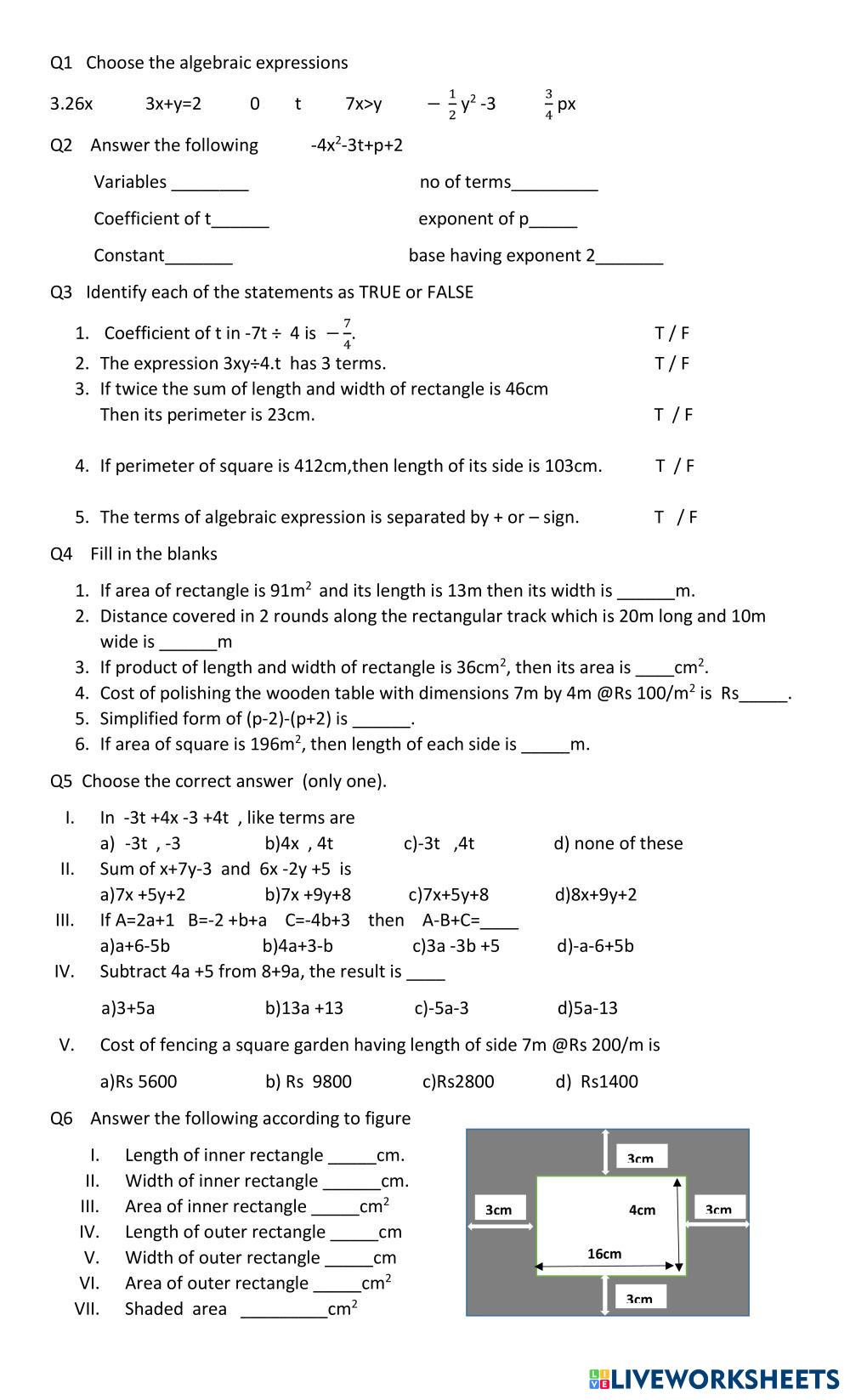 activities related to area and perimeter