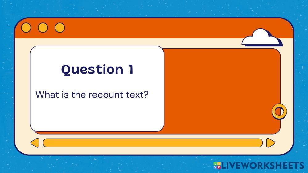 Created bySifaSilvia recount text Structure Age 10-17 level: 8 English คำแนะนำของผู้เขียน My Google Classroom Courses × 0 classes selected (0 students total) Quick Access Select all classes (0 classes) All Classes Loading courses... ยกเลิก Share Share to selected Course __COURSE_NAME__ __STUDENT_NAME__ (__STUDENT_EMAIL__) LKPD_Recount Text ดาวน์โหลด Worksheet Validation Check my answers Emails my answers to my teacher ชื่อเต็ม Group/level School subject Teacher's email or key code Close ส่งข้อมูล Validating worksheet... (12) Your answers have been sent to your teacher. Good luck! OK We encountered an error submitting your answers. Please try again. OK โฆษณา | ใช้งานแบบไม่มีโฆษณา Created bySifaSilvia recount text Structure Age 10-17 level: 8 English คำแนะนำของผู้เขียน