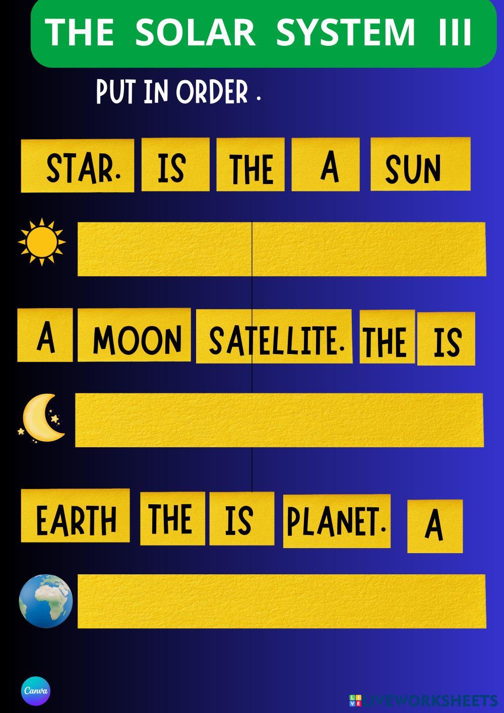 Created by ANGELES5 สังคมศึกษา ประถมศึกษา ป.1 (ประถมศึกษาปีที่ 1) ภูมิศาสตร์ English คำแนะนำของผู้เขียน PUT IN ORDER. My Google Classroom Courses × 0 classes selected (0 students total) Quick Access Select all classes (0 classes) All Classes Loading courses... ยกเลิก Share Share to selected Course __COURSE_NAME__ __STUDENT_NAME__ (__STUDENT_EMAIL__) THE SOLAR SYSTEM III ดาวน์โหลด Worksheet Validation Check my answers Emails my answers to my teacher ชื่อเต็ม Group/level School subject Teacher's email or key code Close ส่งข้อมูล Validating worksheet... (12) Your answers have been sent to your teacher. Good luck! OK We encountered an error submitting your answers. Please try again. OK โฆษณา | ใช้งานแบบไม่มีโฆษณา Created by ANGELES5 สังคมศึกษา ประถมศึกษา ป.1 (ประถมศึกษาปีที่ 1) ภูมิศาสตร์ English คำแนะนำของผู้เขียน PUT IN ORDER. สำรวจแผ่นงาน DAY OR NIGHT Social Studies 1st grade DAY OR NIGHT Geography - Social Studies CHOOSE THE RIGHT WORD. DAY and NIGHT Social Studies 1st grade DAY and NIGHT Geography - Social Studies LISTEN TO THE SENTENCES . THE SOLAR SYSTEM II Social Studies 1st grade THE SOLAR SYSTEM II Geography - Social Studies CHOOSE THE RIGHT SENTENCES. THE SOLAR SYSTEM I Social Studies 1st grade THE SOLAR SYSTEM I Geography - Social Studies Listen to the sentences about the Solar System.