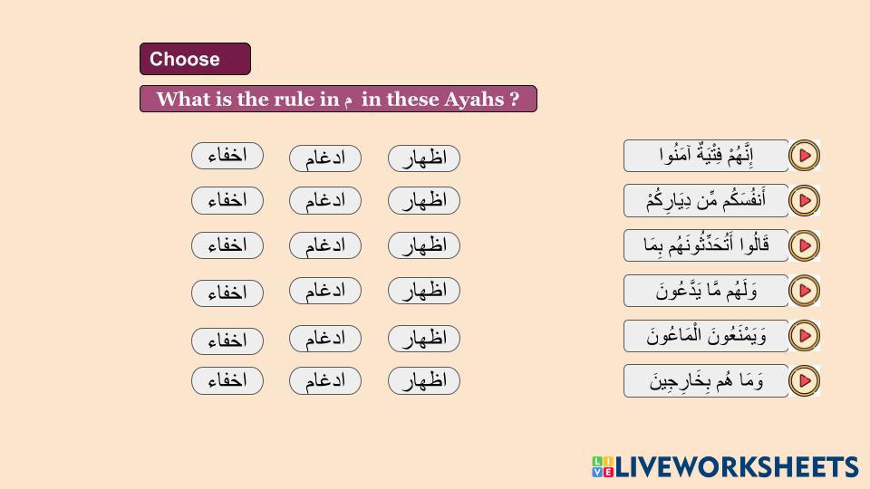 Created byEsraa تجويد م Age 14+ level: 3 English คำแนะนำของผู้เขียน My Google Classroom Courses × 0 classes selected (0 students total) Quick Access Select all classes (0 classes) All Classes Loading courses... ยกเลิก Share Share to selected Course __COURSE_NAME__ __STUDENT_NAME__ (__STUDENT_EMAIL__) Esraa Hegazy ดาวน์โหลด Worksheet Validation Check my answers Emails my answers to my teacher ชื่อเต็ม Group/level School subject Teacher's email or key code Close ส่งข้อมูล Validating worksheet... (12) Your answers have been sent to your teacher. Good luck! OK We encountered an error submitting your answers. Please try again. OK โฆษณา | ใช้งานแบบไม่มีโฆษณา Created byEsraa تجويد م Age 14+ level: 3 English คำแนะนำของผู้เขียน