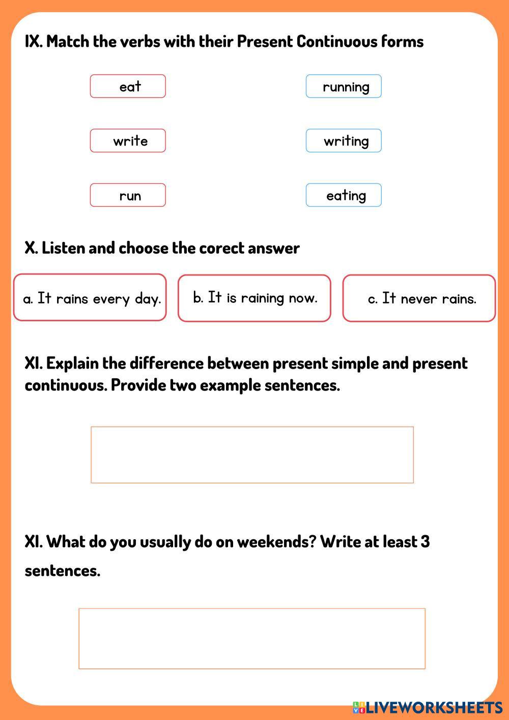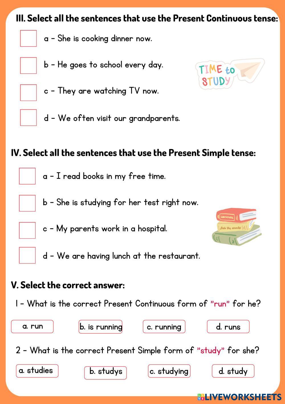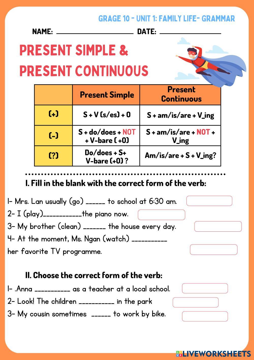 Created byPhan Thanh Yến Phương "Unit 1: Family Life" "Present Simple - Present Continuous" Age 15+ level: Grade 10 English คำแนะนำของผู้เขียน My Google Classroom Courses × 0 classes selected (0 students total) Quick Access Select all classes (0 classes) All Classes Loading courses... ยกเลิก Share Share to selected Course __COURSE_NAME__ __STUDENT_NAME__ (__STUDENT_EMAIL__) URFLT-SA2204-G2-Grammar-Phan Thanh Yến Phương ดาวน์โหลด Worksheet Validation Check my answers Emails my answers to my teacher ชื่อเต็ม Group/level School subject Teacher's email or key code Close ส่งข้อมูล Validating worksheet... (12) Your answers have been sent to your teacher. Good luck! OK We encountered an error submitting your answers. Please try again. OK โฆษณา | ใช้งานแบบไม่มีโฆษณา Created byPhan Thanh Yến Phương "Unit 1: Family Life" "Present Simple - Present Continuous" Age 15+ level: Grade 10 English คำแนะนำของผู้เขียน