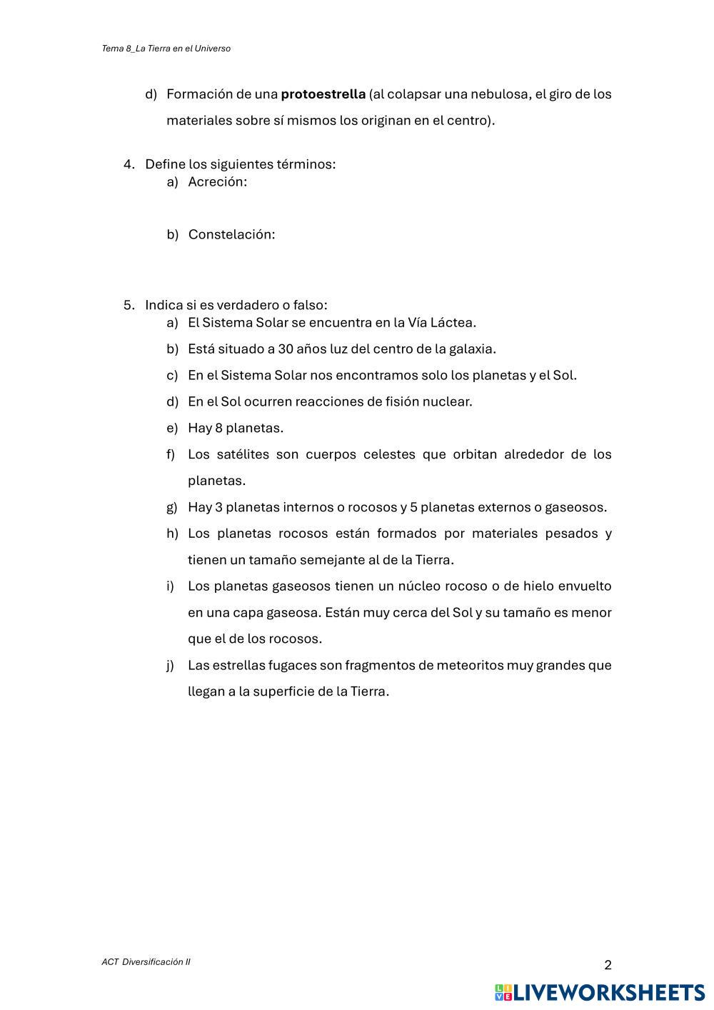Created by MaJoseBarrueco Biología y Geología La Tierra en el universo Age 15+ level: DiversificaciÓN II Spanish คำแนะนำของผู้เขียน My Google Classroom Courses × 0 classes selected (0 students total) Quick Access Select all classes (0 classes) All Classes Loading courses... ยกเลิก Share Share to selected Course __COURSE_NAME__ __STUDENT_NAME__ (__STUDENT_EMAIL__) Repaso "El origen del Universo y del Sistema Solar. Sistema Solar" ดาวน์โหลด Worksheet Validation Check my answers Emails my answers to my teacher ชื่อเต็ม Group/level School subject Teacher's email or key code Close ส่งข้อมูล Validating worksheet... (12) Your answers have been sent to your teacher. Good luck! OK We encountered an error submitting your answers. Please try again. OK โฆษณา | ใช้งานแบบไม่มีโฆษณา Created by MaJoseBarrueco Biología y Geología La Tierra en el universo Age 15+ level: DiversificaciÓN II Spanish คำแนะนำของผู้เขียน
