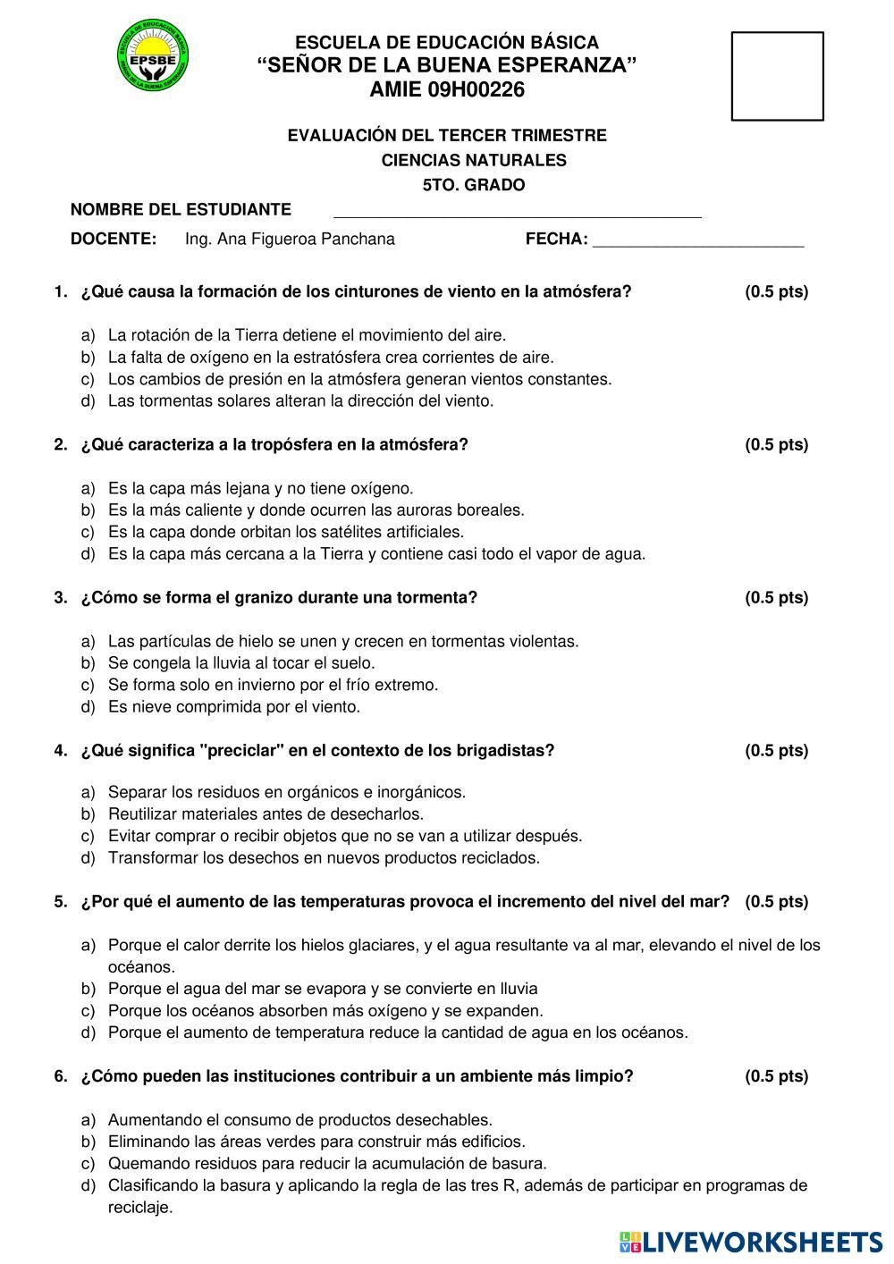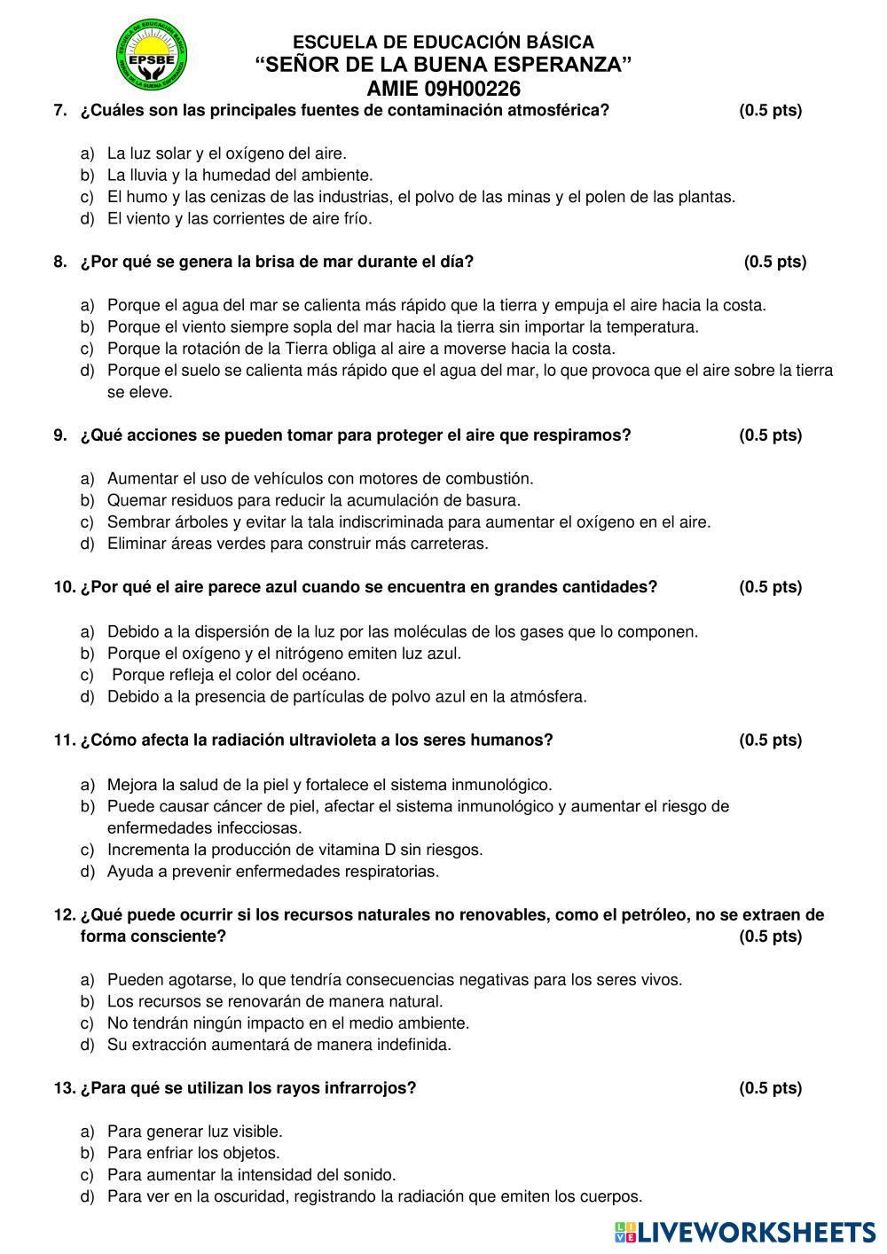 Created bySeñor de la Buena Esperanza CCNN, Naturales, Conocimiento del medio EVALUACIÓN DE CCNN 5TO -III TRIMESTRE Age 8-13 level: 5 Spanish คำแนะนำของผู้เขียน My Google Classroom Courses × 0 classes selected (0 students total) Quick Access Select all classes (0 classes) All Classes Loading courses... ยกเลิก Share Share to selected Course __COURSE_NAME__ __STUDENT_NAME__ (__STUDENT_EMAIL__) EVALUACIÓN DE CCNN 5TO -III TRIMESTRE ดาวน์โหลด Worksheet Validation Check my answers Emails my answers to my teacher ชื่อเต็ม Group/level School subject Teacher's email or key code Close ส่งข้อมูล Validating worksheet... (12) Your answers have been sent to your teacher. Good luck! OK We encountered an error submitting your answers. Please try again. OK โฆษณา | ใช้งานแบบไม่มีโฆษณา Created bySeñor de la Buena Esperanza CCNN, Naturales, Conocimiento del medio EVALUACIÓN DE CCNN 5TO -III TRIMESTRE Age 8-13 level: 5 Spanish คำแนะนำของผู้เขียน