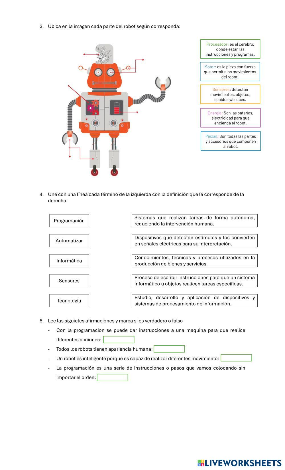 Created byNATHALY ALEXANDRA CAICEDO Ciencia y tecnología Robotica Age 9-15 level: 4 Spanish คำแนะนำของผู้เขียน My Google Classroom Courses × 0 classes selected (0 students total) Quick Access Select all classes (0 classes) All Classes Loading courses... ยกเลิก Share Share to selected Course __COURSE_NAME__ __STUDENT_NAME__ (__STUDENT_EMAIL__) GUIA 1 ROBOTICA ดาวน์โหลด Worksheet Validation Check my answers Emails my answers to my teacher ชื่อเต็ม Group/level School subject Teacher's email or key code Close ส่งข้อมูล Validating worksheet... (12) Your answers have been sent to your teacher. Good luck! OK We encountered an error submitting your answers. Please try again. OK โฆษณา | ใช้งานแบบไม่มีโฆษณา Created byNATHALY ALEXANDRA CAICEDO Ciencia y tecnología Robotica Age 9-15 level: 4 Spanish คำแนะนำของผู้เขียน