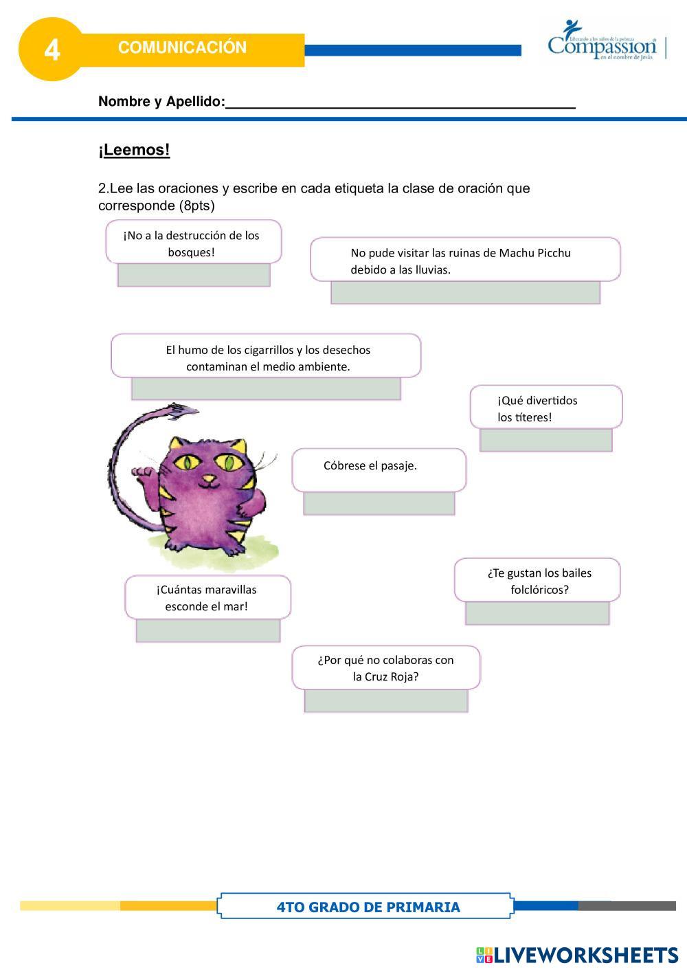 Created byCompassion international del Perú Comunicación 1234 Age 10-13 level: 4TO PRIMARIA Spanish คำแนะนำของผู้เขียน My Google Classroom Courses × 0 classes selected (0 students total) Quick Access Select all classes (0 classes) All Classes Loading courses... ยกเลิก Share Share to selected Course __COURSE_NAME__ __STUDENT_NAME__ (__STUDENT_EMAIL__) CLASE 12 ดาวน์โหลด Worksheet Validation Check my answers Emails my answers to my teacher ชื่อเต็ม Group/level School subject Teacher's email or key code Close ส่งข้อมูล Validating worksheet... (12) Your answers have been sent to your teacher. Good luck! OK We encountered an error submitting your answers. Please try again. OK โฆษณา | ใช้งานแบบไม่มีโฆษณา Created byCompassion international del Perú Comunicación 1234 Age 10-13 level: 4TO PRIMARIA Spanish คำแนะนำของผู้เขียน