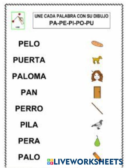 Unir palabras y dibujo de la letra P