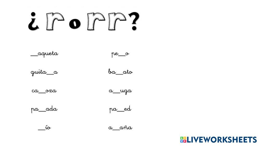 Rellena los huecos con r o rr