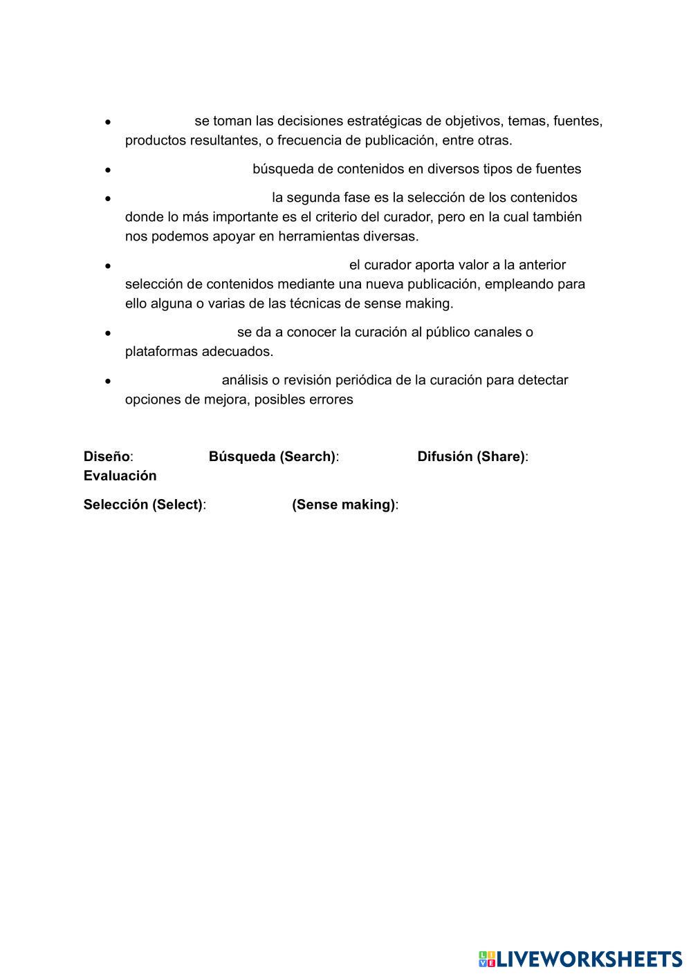 Realiza las siguientes actividades sobre la curacion de contenidos.
