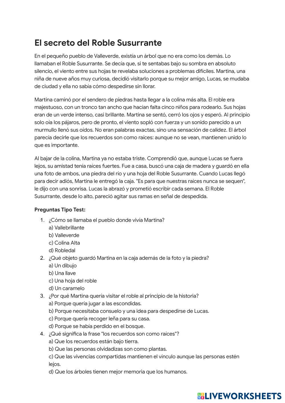 Comprensión lectora: el cuento