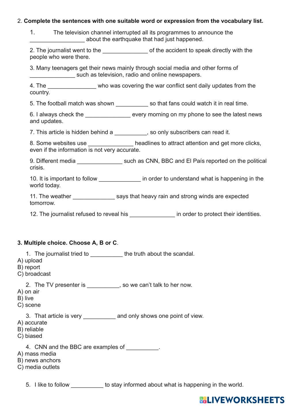 VOCABULARY UNIT 4 - NEWS TRAVELS FAST