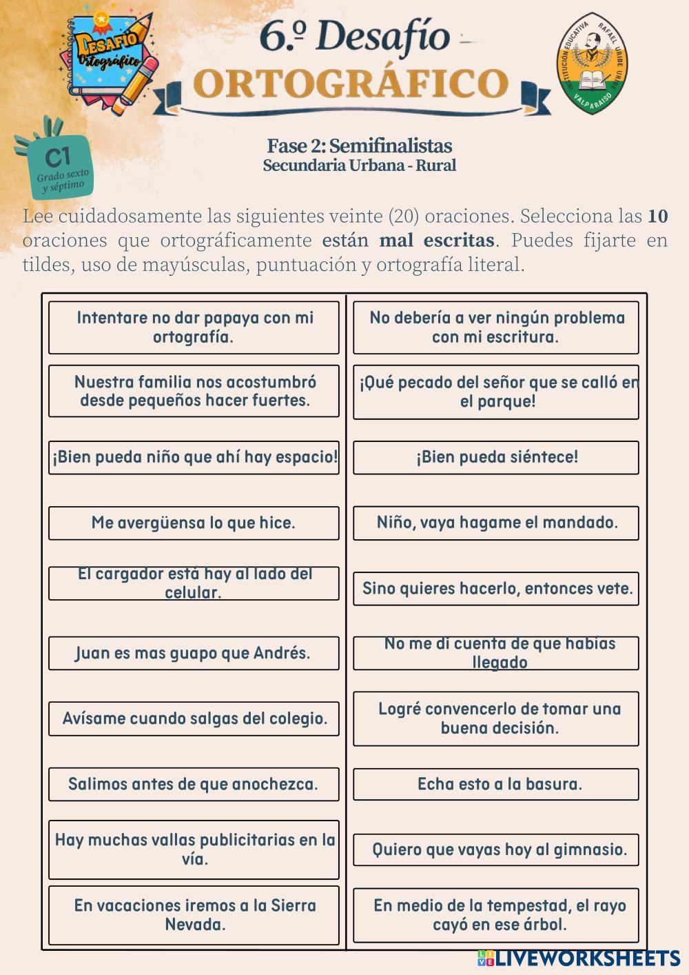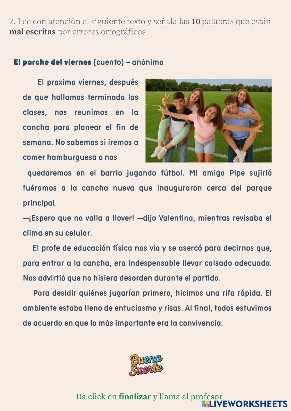 Created by yuby1024 ภาษาอังกฤษ มัธยมศึกษาตอนต้น ป.6 (ประถมศึกษาปีที่ 6) การเขียน Spanish คำแนะนำของผู้เขียน Lee cuidadosamente y selecciona la opción correcta My Google Classroom Courses × 0 classes selected (0 students total) Quick Access Select all classes (0 classes) All Classes Loading courses... ยกเลิก Share Share to selected Course __COURSE_NAME__ __STUDENT_NAME__ (__STUDENT_EMAIL__) D.O 2026 C1Secundaria ดาวน์โหลด Worksheet Validation Check my answers Emails my answers to my teacher ชื่อเต็ม Group/level School subject Teacher's email or key code Close ส่งข้อมูล Validating worksheet... (12) Your answers have been sent to your teacher. Good luck! OK We encountered an error submitting your answers. Please try again. OK โฆษณา | ใช้งานแบบไม่มีโฆษณา Created by yuby1024 ภาษาอังกฤษ มัธยมศึกษาตอนต้น ป.6 (ประถมศึกษาปีที่ 6) การเขียน Spanish คำแนะนำของผู้เขียน Lee cuidadosamente y selecciona la opción correcta สำรวจแผ่นงาน Lesson 2: Animal camouflage English Language 6th grade Lesson 2: Animal camouflage Writing - English Language Choose an animal that uses camouflage from the pictures above. Write a short description of the animal, using the questions to help you. Animals Camouflage English Language 6th grade Animals Camouflage Writing - English Language Choose an animal that uses camouflage from the pictures above. Write a short description of the animal, using the questions to help you. reorder English Language 6th grade reorder Writing - English Language reorder Допиши предложения English Language 6th grade Допиши предложения Writing - English Language Допиши предложения