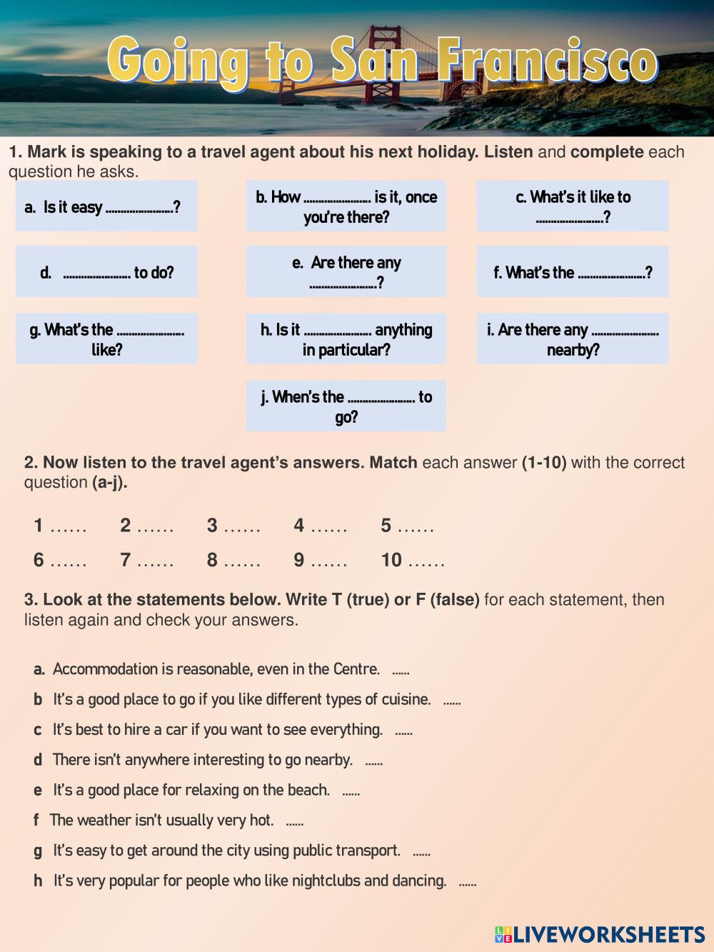 Listen and complete each section.