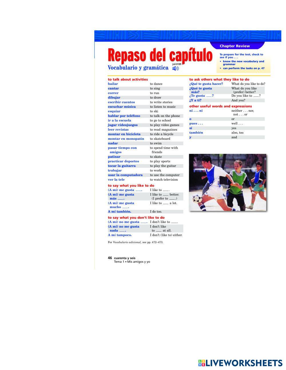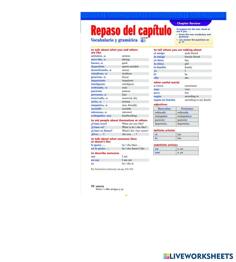 Realidades 1 - Vocabulary - Chapters 1 - 7