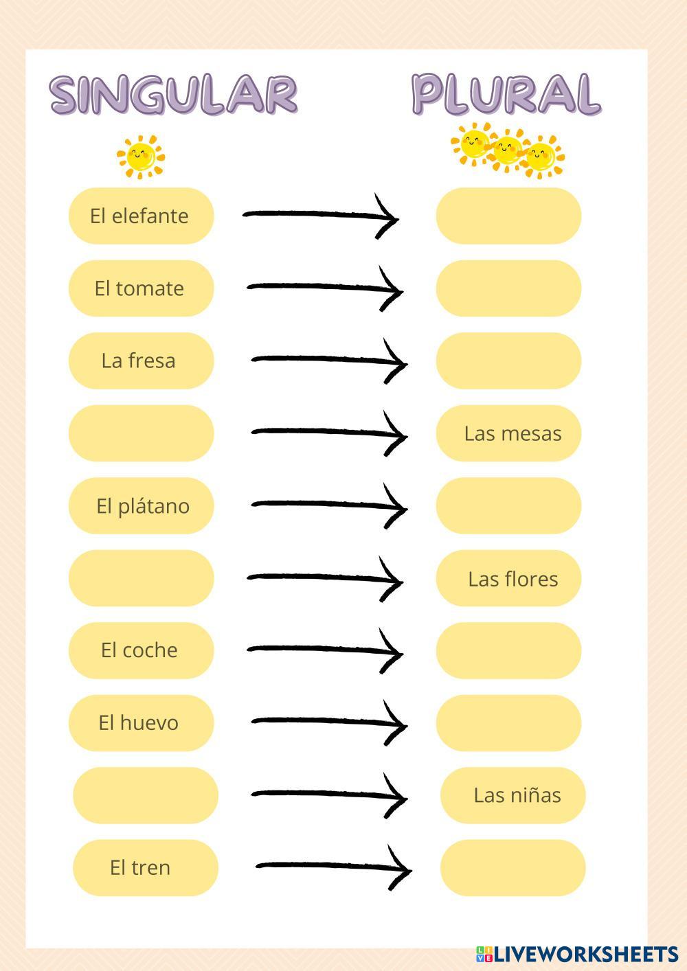 Created byPatricia_PT Español como Lengua Extranjera (ELE) Singular y plural Age 6+ level: 6-17 Spanish คำแนะนำของผู้เขียน My Google Classroom Courses × 0 classes selected (0 students total) Quick Access Select all classes (0 classes) All Classes Loading courses... ยกเลิก Share Share to selected Course __COURSE_NAME__ __STUDENT_NAME__ (__STUDENT_EMAIL__) SINGULAR Y PLURAL ดาวน์โหลด Worksheet Validation Check my answers Emails my answers to my teacher ชื่อเต็ม Group/level School subject Teacher's email or key code Close ส่งข้อมูล Validating worksheet... (12) Your answers have been sent to your teacher. Good luck! OK We encountered an error submitting your answers. Please try again. OK โฆษณา | ใช้งานแบบไม่มีโฆษณา Created byPatricia_PT Español como Lengua Extranjera (ELE) Singular y plural Age 6+ level: 6-17 Spanish คำแนะนำของผู้เขียน