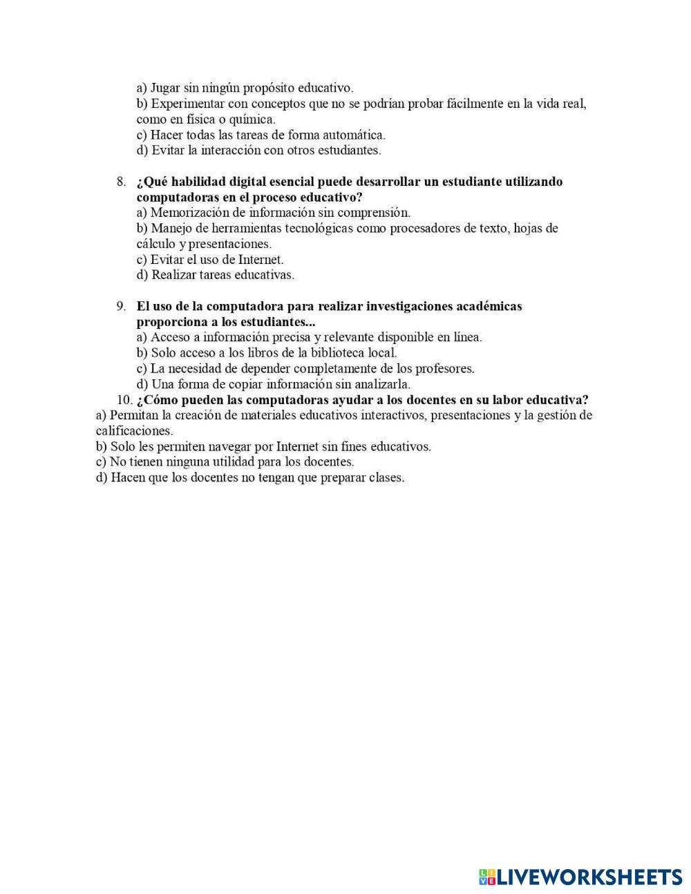Created byJose Alfredo Jimenez Irigoyen Evaluación pedagógica La computadoras Age 15+ level: medio Spanish คำแนะนำของผู้เขียน My Google Classroom Courses × 0 classes selected (0 students total) Quick Access Select all classes (0 classes) All Classes Loading courses... ยกเลิก Share Share to selected Course __COURSE_NAME__ __STUDENT_NAME__ (__STUDENT_EMAIL__) tema2 la computadora como recurso educativo ดาวน์โหลด Worksheet Validation Check my answers Emails my answers to my teacher ชื่อเต็ม Group/level School subject Teacher's email or key code Close ส่งข้อมูล Validating worksheet... (12) Your answers have been sent to your teacher. Good luck! OK We encountered an error submitting your answers. Please try again. OK โฆษณา | ใช้งานแบบไม่มีโฆษณา Created byJose Alfredo Jimenez Irigoyen Evaluación pedagógica La computadoras Age 15+ level: medio Spanish คำแนะนำของผู้เขียน