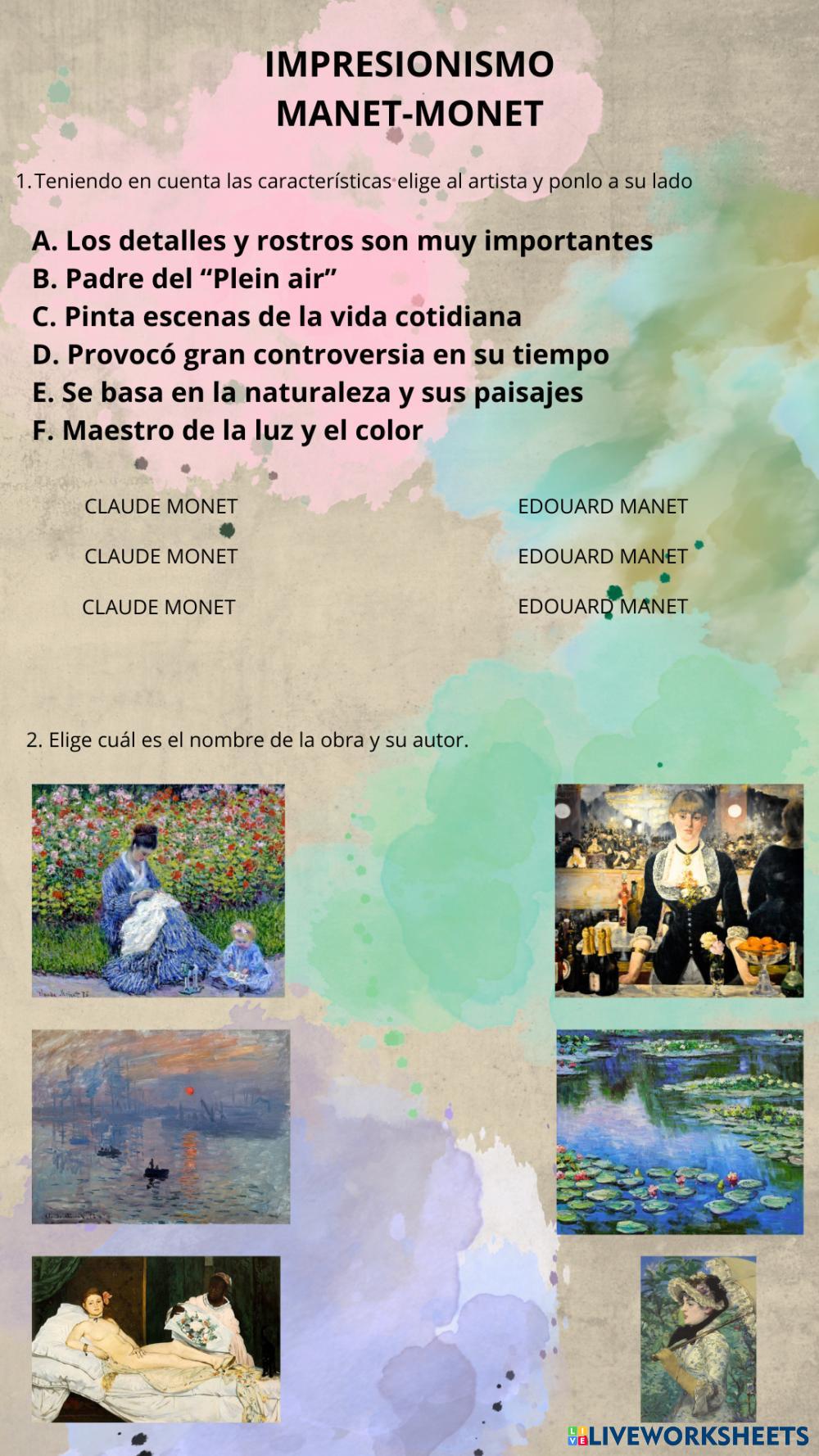 Aprender a diferenciar los estilos y obras de dos grandes impresionistas, con un estilo más sencillo, para alumnos con desfase curricular.