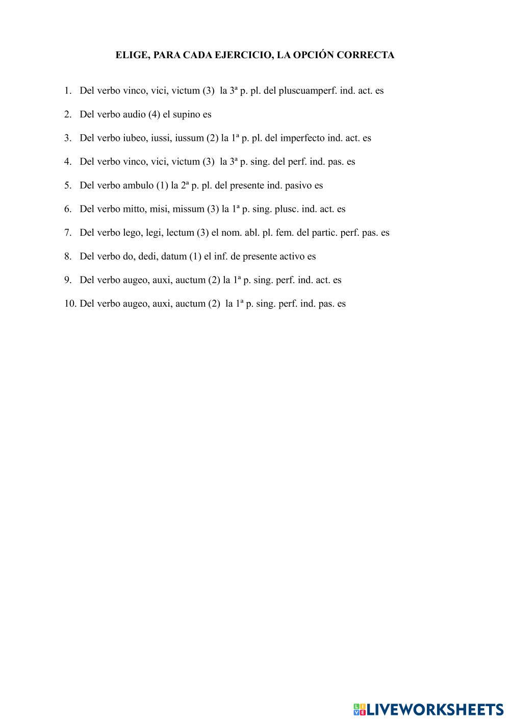 Created by magisterjuande LATÍN morfología verbal Age 16+ level: 1º/2º Bach Spanish คำแนะนำของผู้เขียน My Google Classroom Courses × 0 classes selected (0 students total) Quick Access Select all classes (0 classes) All Classes Loading courses... ยกเลิก Share Share to selected Course __COURSE_NAME__ __STUDENT_NAME__ (__STUDENT_EMAIL__) Morfología verbal latina: temas de presente y de perfecto en voz activa y pasiva ดาวน์โหลด Worksheet Validation Check my answers Emails my answers to my teacher ชื่อเต็ม Group/level School subject Teacher's email or key code Close ส่งข้อมูล Validating worksheet... (12) Your answers have been sent to your teacher. Good luck! OK We encountered an error submitting your answers. Please try again. OK โฆษณา | ใช้งานแบบไม่มีโฆษณา Created by magisterjuande LATÍN morfología verbal Age 16+ level: 1º/2º Bach Spanish คำแนะนำของผู้เขียน