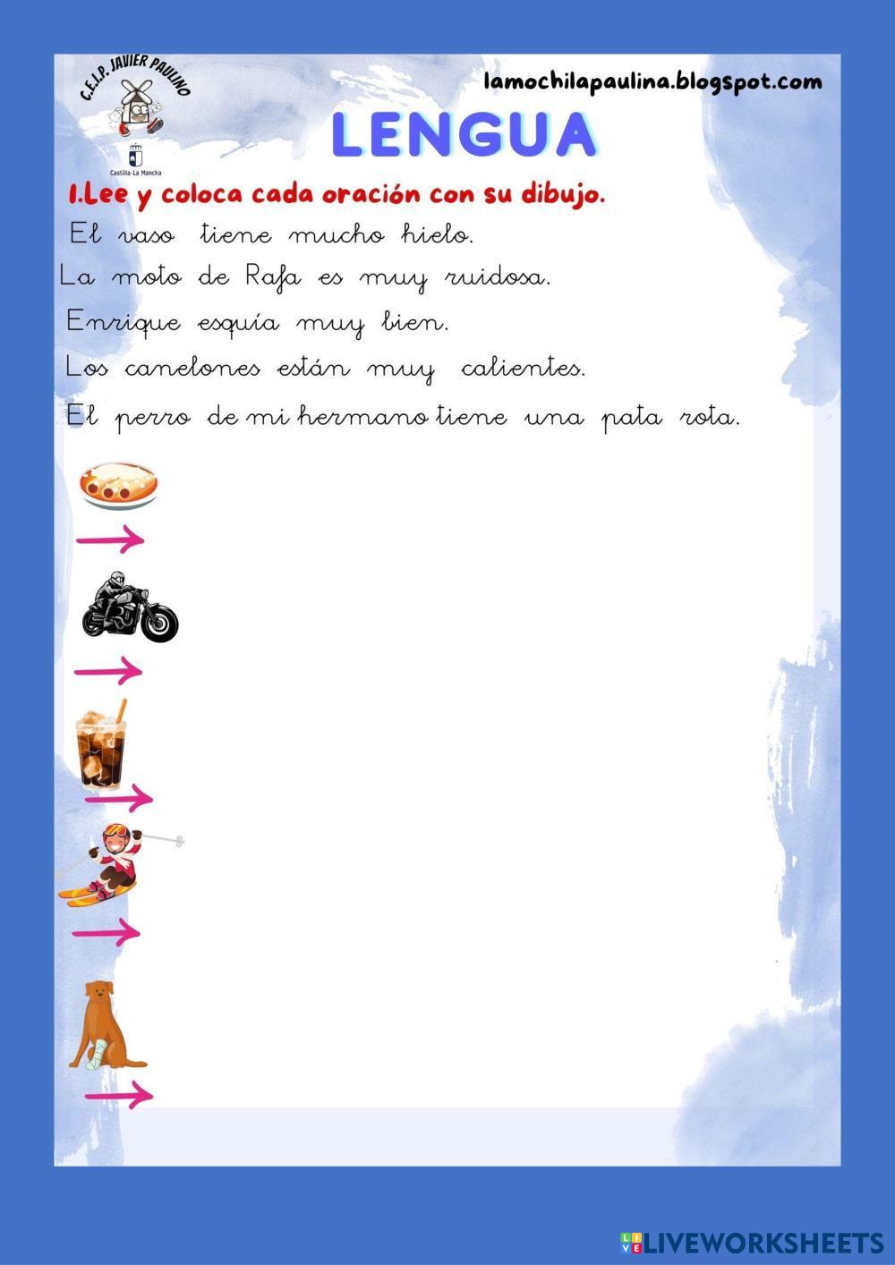 Created byDavid García Blanco Lengua Castellana Comprensión lectora Age 6-10 level: PRIMERO DE PRIMARIA Spanish คำแนะนำของผู้เขียน My Google Classroom Courses × 0 classes selected (0 students total) Quick Access Select all classes (0 classes) All Classes Loading courses... ยกเลิก Share Share to selected Course __COURSE_NAME__ __STUDENT_NAME__ (__STUDENT_EMAIL__) LECTURA DE ORACIONES Y ORTOGRAFÍA. ดาวน์โหลด Worksheet Validation Check my answers Emails my answers to my teacher ชื่อเต็ม Group/level School subject Teacher's email or key code Close ส่งข้อมูล Validating worksheet... (12) Your answers have been sent to your teacher. Good luck! OK We encountered an error submitting your answers. Please try again. OK โฆษณา | ใช้งานแบบไม่มีโฆษณา Created byDavid García Blanco Lengua Castellana Comprensión lectora Age 6-10 level: PRIMERO DE PRIMARIA Spanish คำแนะนำของผู้เขียน