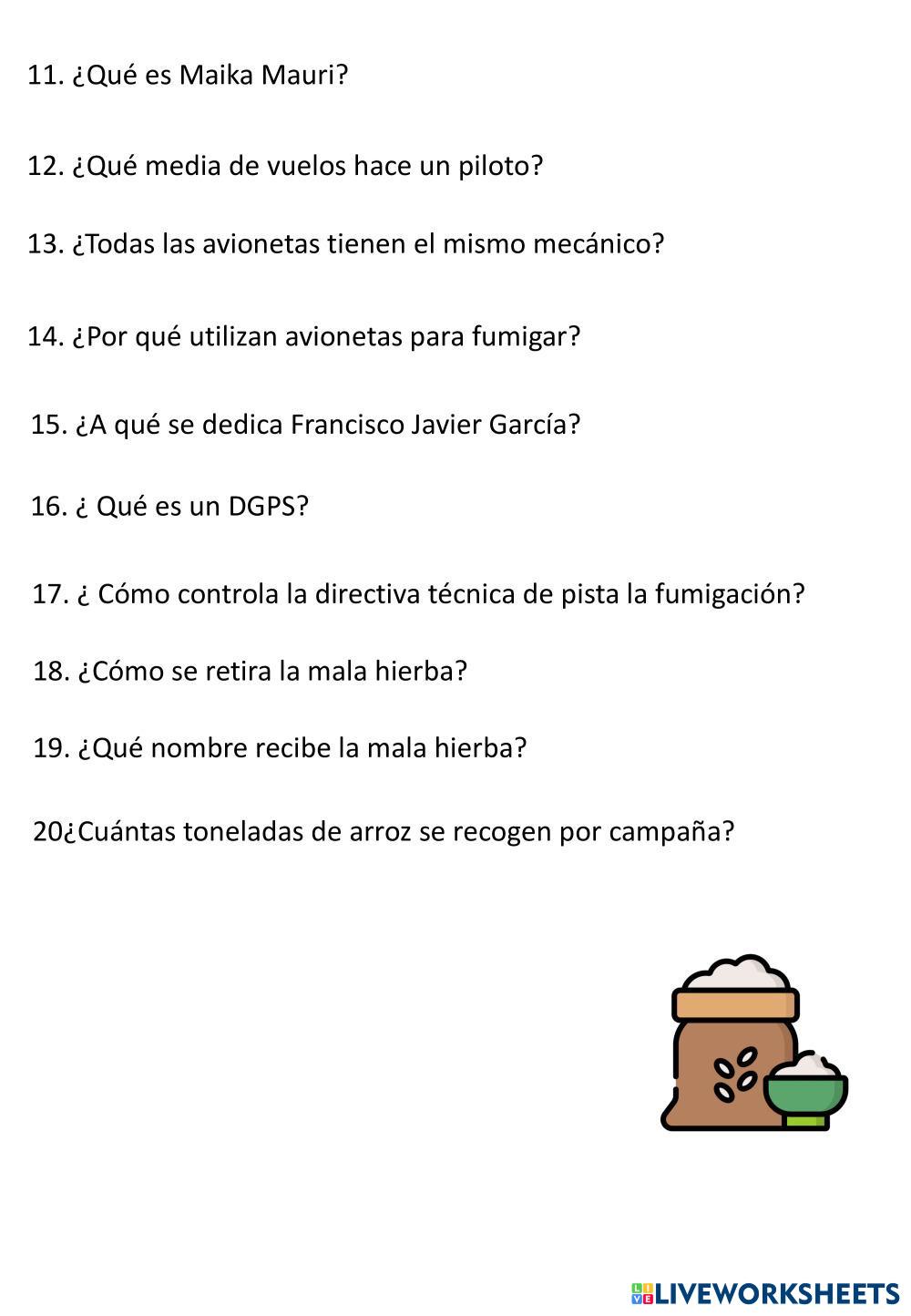 Created byCristina Marín Contreras Lengua Castellana Comprension oral Age 11-15 level: 5º Spanish คำแนะนำของผู้เขียน My Google Classroom Courses × 0 classes selected (0 students total) Quick Access Select all classes (0 classes) All Classes Loading courses... ยกเลิก Share Share to selected Course __COURSE_NAME__ __STUDENT_NAME__ (__STUDENT_EMAIL__) EL CULTIVO DEL ARROZ EN LA MARISMA DE DOÑANA ดาวน์โหลด Worksheet Validation Check my answers Emails my answers to my teacher ชื่อเต็ม Group/level School subject Teacher's email or key code Close ส่งข้อมูล Validating worksheet... (12) Your answers have been sent to your teacher. Good luck! OK We encountered an error submitting your answers. Please try again. OK โฆษณา | ใช้งานแบบไม่มีโฆษณา Created byCristina Marín Contreras Lengua Castellana Comprension oral Age 11-15 level: 5º Spanish คำแนะนำของผู้เขียน