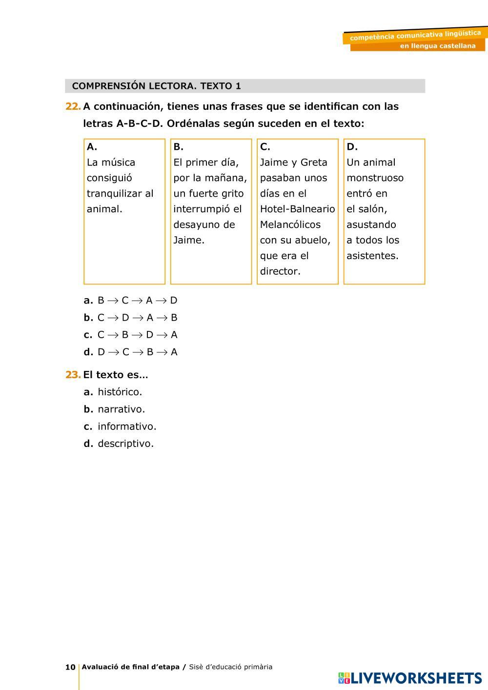 Created by xescanil Lengua Castellana Comprensión lectora Age 11-15 level: 6º Spanish คำแนะนำของผู้เขียน My Google Classroom Courses × 0 classes selected (0 students total) Quick Access Select all classes (0 classes) All Classes Loading courses... ยกเลิก Share Share to selected Course __COURSE_NAME__ __STUDENT_NAME__ (__STUDENT_EMAIL__) Comprensión lectora 1 Competencias básicas 2024 ดาวน์โหลด Worksheet Validation Check my answers Emails my answers to my teacher ชื่อเต็ม Group/level School subject Teacher's email or key code Close ส่งข้อมูล Validating worksheet... (12) Your answers have been sent to your teacher. Good luck! OK We encountered an error submitting your answers. Please try again. OK โฆษณา | ใช้งานแบบไม่มีโฆษณา Created by xescanil Lengua Castellana Comprensión lectora Age 11-15 level: 6º Spanish คำแนะนำของผู้เขียน