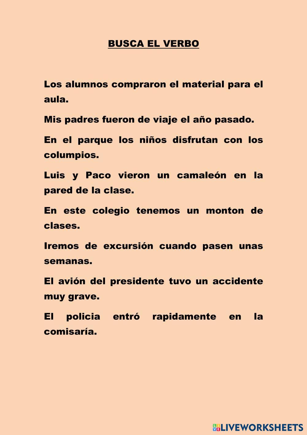 Created by lorenaseks Lengua española Verbs Age 10-15 level: 4º primaria Spanish คำแนะนำของผู้เขียน xjxjjx My Google Classroom Courses × 0 classes selected (0 students total) Quick Access Select all classes (0 classes) All Classes Loading courses... ยกเลิก Share Share to selected Course __COURSE_NAME__ __STUDENT_NAME__ (__STUDENT_EMAIL__) Busca el verbo y el adjetivo ดาวน์โหลด Worksheet Validation Check my answers Emails my answers to my teacher ชื่อเต็ม Group/level School subject Teacher's email or key code Close ส่งข้อมูล Validating worksheet... (12) Your answers have been sent to your teacher. Good luck! OK We encountered an error submitting your answers. Please try again. OK โฆษณา | ใช้งานแบบไม่มีโฆษณา Created by lorenaseks Lengua española Verbs Age 10-15 level: 4º primaria Spanish คำแนะนำของผู้เขียน xjxjjx