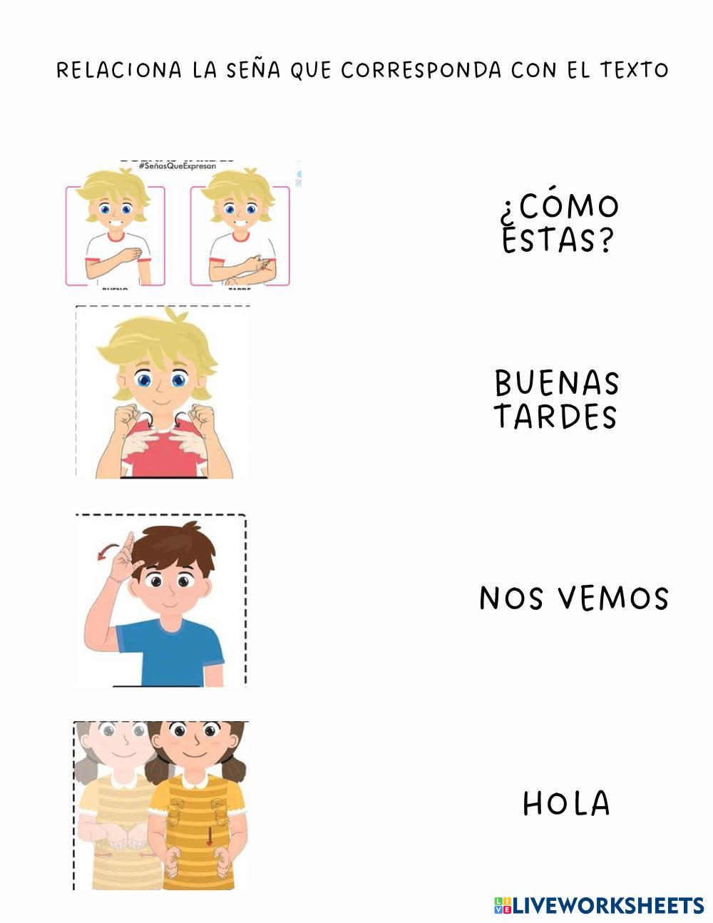 Created byMONIKAVM Lengua Materna Español Lecto-escritura Age 9+ level: 1 Spanish คำแนะนำของผู้เขียน relacionar las imágenes de señas con el texto en español My Google Classroom Courses × 0 classes selected (0 students total) Quick Access Select all classes (0 classes) All Classes Loading courses... ยกเลิก Share Share to selected Course __COURSE_NAME__ __STUDENT_NAME__ (__STUDENT_EMAIL__) saludos en LSM ดาวน์โหลด Worksheet Validation Check my answers Emails my answers to my teacher ชื่อเต็ม Group/level School subject Teacher's email or key code Close ส่งข้อมูล Validating worksheet... (12) Your answers have been sent to your teacher. Good luck! OK We encountered an error submitting your answers. Please try again. OK โฆษณา | ใช้งานแบบไม่มีโฆษณา Created byMONIKAVM Lengua Materna Español Lecto-escritura Age 9+ level: 1 Spanish คำแนะนำของผู้เขียน relacionar las imágenes de señas con el texto en español