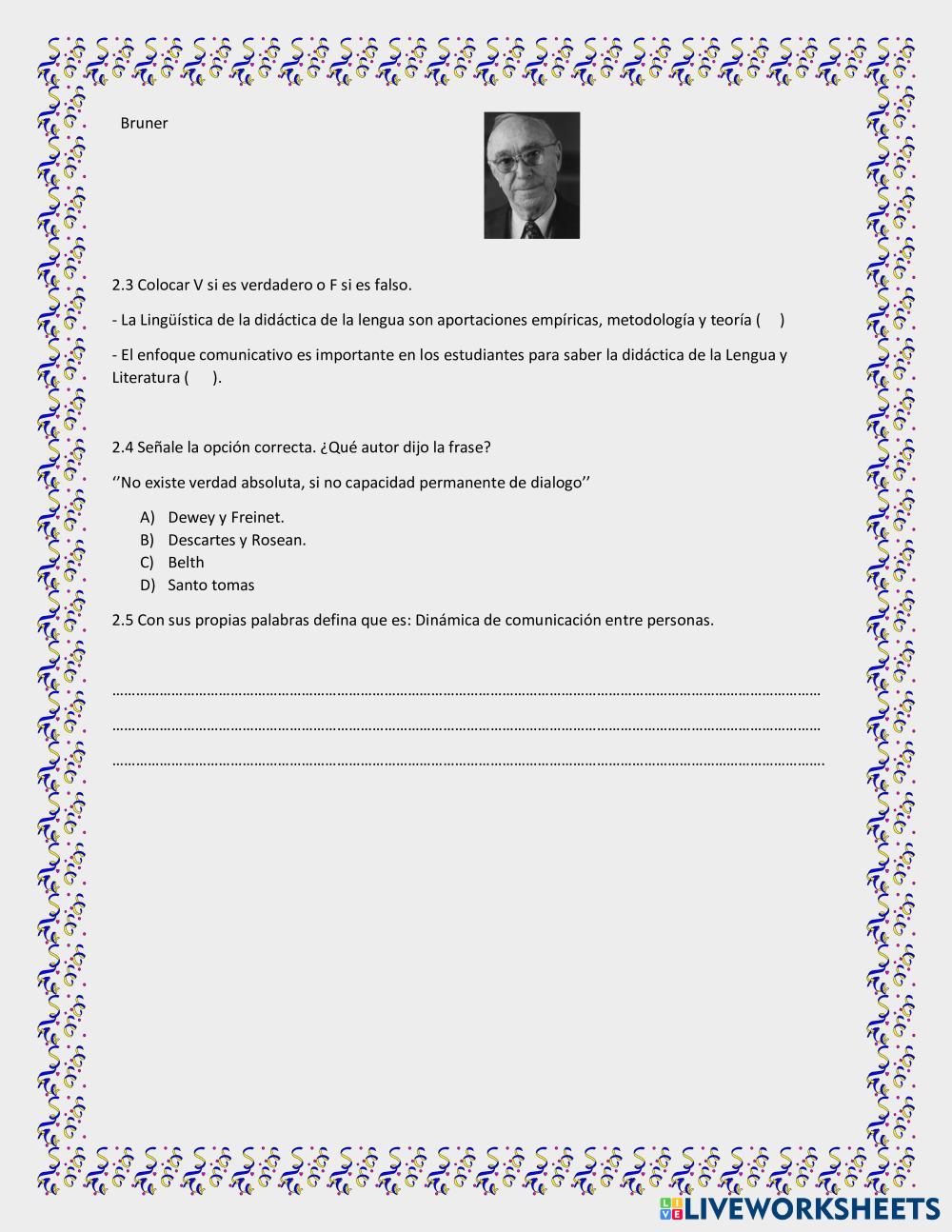 Created byMaría Lizbeth Sanmartín Pesantez Lengua y Literatura Prueba de Diagnostico Lengua y Literatura Age 10+ level: sexto Spanish คำแนะนำของผู้เขียน My Google Classroom Courses × 0 classes selected (0 students total) Quick Access Select all classes (0 classes) All Classes Loading courses... ยกเลิก Share Share to selected Course __COURSE_NAME__ __STUDENT_NAME__ (__STUDENT_EMAIL__) MARCO EPISTEMOLOGICO ดาวน์โหลด Worksheet Validation Check my answers Emails my answers to my teacher ชื่อเต็ม Group/level School subject Teacher's email or key code Close ส่งข้อมูล Validating worksheet... (12) Your answers have been sent to your teacher. Good luck! OK We encountered an error submitting your answers. Please try again. OK โฆษณา | ใช้งานแบบไม่มีโฆษณา Created byMaría Lizbeth Sanmartín Pesantez Lengua y Literatura Prueba de Diagnostico Lengua y Literatura Age 10+ level: sexto Spanish คำแนะนำของผู้เขียน