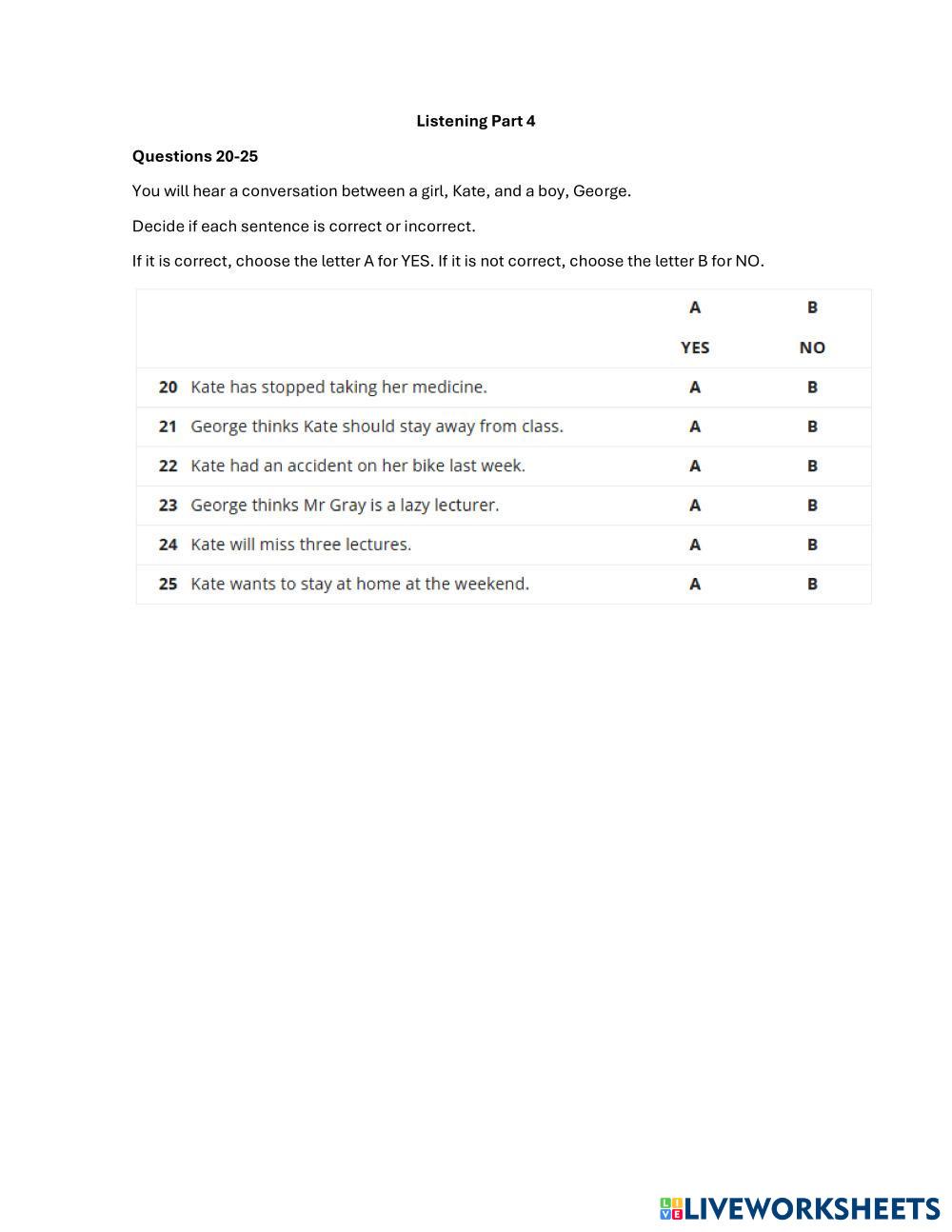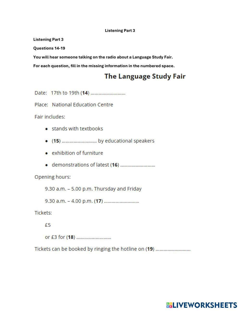 Created by NNSS_Perez Listening Listening Age 3+ level: B1 Spanish คำแนะนำของผู้เขียน My Google Classroom Courses × 0 classes selected (0 students total) Quick Access Select all classes (0 classes) All Classes Loading courses... ยกเลิก Share Share to selected Course __COURSE_NAME__ __STUDENT_NAME__ (__STUDENT_EMAIL__) SEVENTH LISTENING PET B1 TRAINING ดาวน์โหลด Worksheet Validation Check my answers Emails my answers to my teacher ชื่อเต็ม Group/level School subject Teacher's email or key code Close ส่งข้อมูล Validating worksheet... (12) Your answers have been sent to your teacher. Good luck! OK We encountered an error submitting your answers. Please try again. OK โฆษณา | ใช้งานแบบไม่มีโฆษณา Created by NNSS_Perez Listening Listening Age 3+ level: B1 Spanish คำแนะนำของผู้เขียน