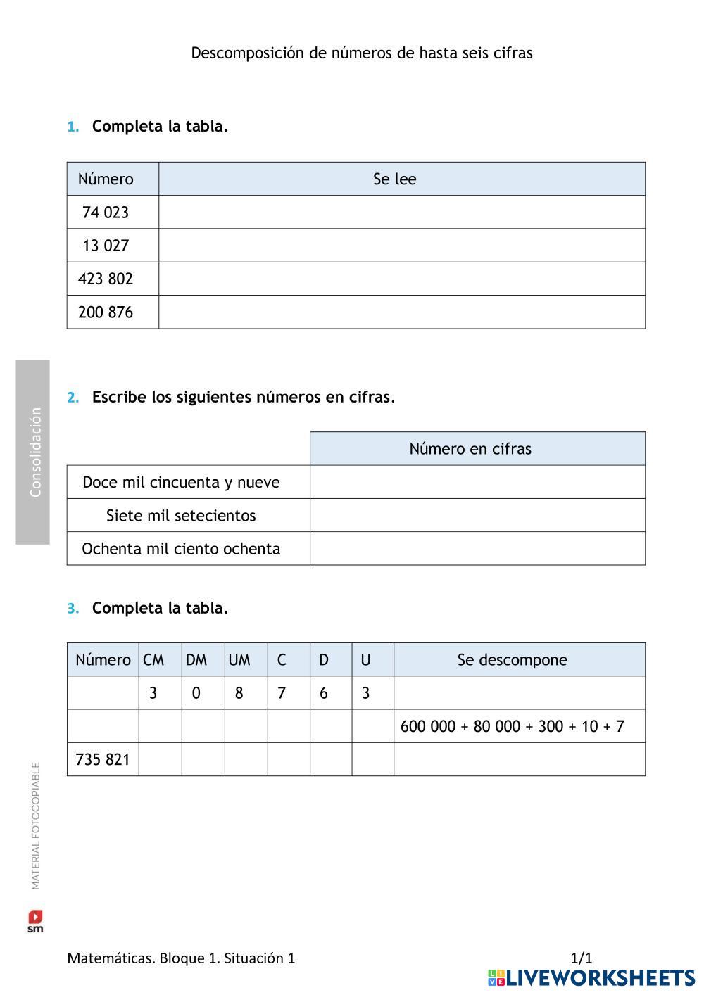Created by Pablocaceres Matemáticas Descomposición de números Age 10-8 level: 5º Primaria Spanish คำแนะนำของผู้เขียน My Google Classroom Courses × 0 classes selected (0 students total) Quick Access Select all classes (0 classes) All Classes Loading courses... ยกเลิก Share Share to selected Course __COURSE_NAME__ __STUDENT_NAME__ (__STUDENT_EMAIL__) Descomposición números de seis cifras ดาวน์โหลด Worksheet Validation Check my answers Emails my answers to my teacher ชื่อเต็ม Group/level School subject Teacher's email or key code Close ส่งข้อมูล Validating worksheet... (12) Your answers have been sent to your teacher. Good luck! OK We encountered an error submitting your answers. Please try again. OK โฆษณา | ใช้งานแบบไม่มีโฆษณา Created by Pablocaceres Matemáticas Descomposición de números Age 10-8 level: 5º Primaria Spanish คำแนะนำของผู้เขียน
