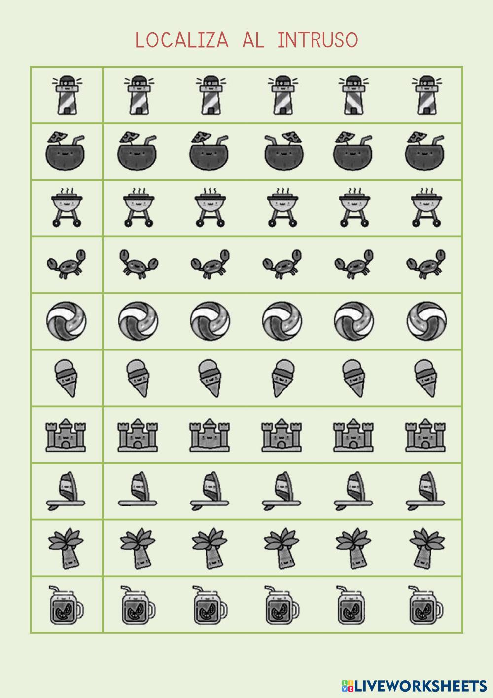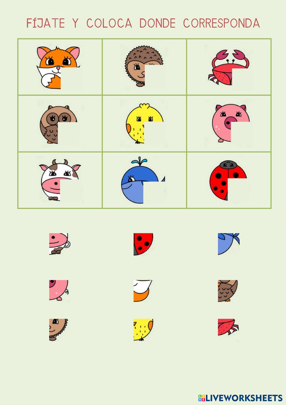 Ficha para realizar un trabajo visual y encontrar las piezas necesarias para completar los dibujos.