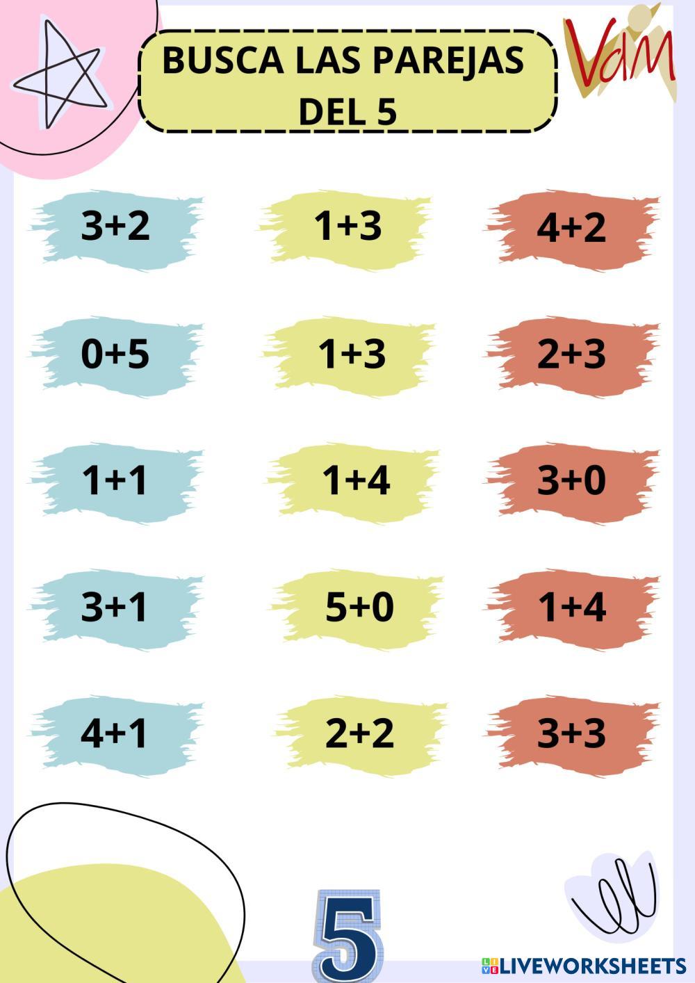 Created by RAMAGA Matemáticas DESCOMPOSICIÓN DEL NUMERO 5 Age 5-4 level: 1º PRIMARIA Spanish คำแนะนำของผู้เขียน My Google Classroom Courses × 0 classes selected (0 students total) Quick Access Select all classes (0 classes) All Classes Loading courses... ยกเลิก Share Share to selected Course __COURSE_NAME__ __STUDENT_NAME__ (__STUDENT_EMAIL__) DESCOMPOSICIÓN DEL 5 ดาวน์โหลด Worksheet Validation Check my answers Emails my answers to my teacher ชื่อเต็ม Group/level School subject Teacher's email or key code Close ส่งข้อมูล Validating worksheet... (12) Your answers have been sent to your teacher. Good luck! OK We encountered an error submitting your answers. Please try again. OK โฆษณา | ใช้งานแบบไม่มีโฆษณา Created by RAMAGA Matemáticas DESCOMPOSICIÓN DEL NUMERO 5 Age 5-4 level: 1º PRIMARIA Spanish คำแนะนำของผู้เขียน